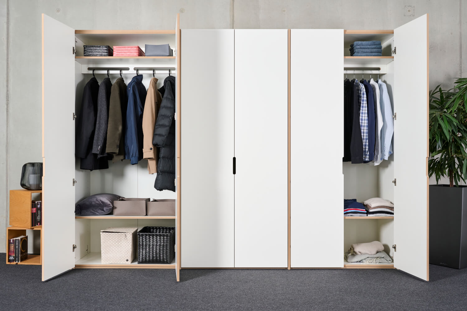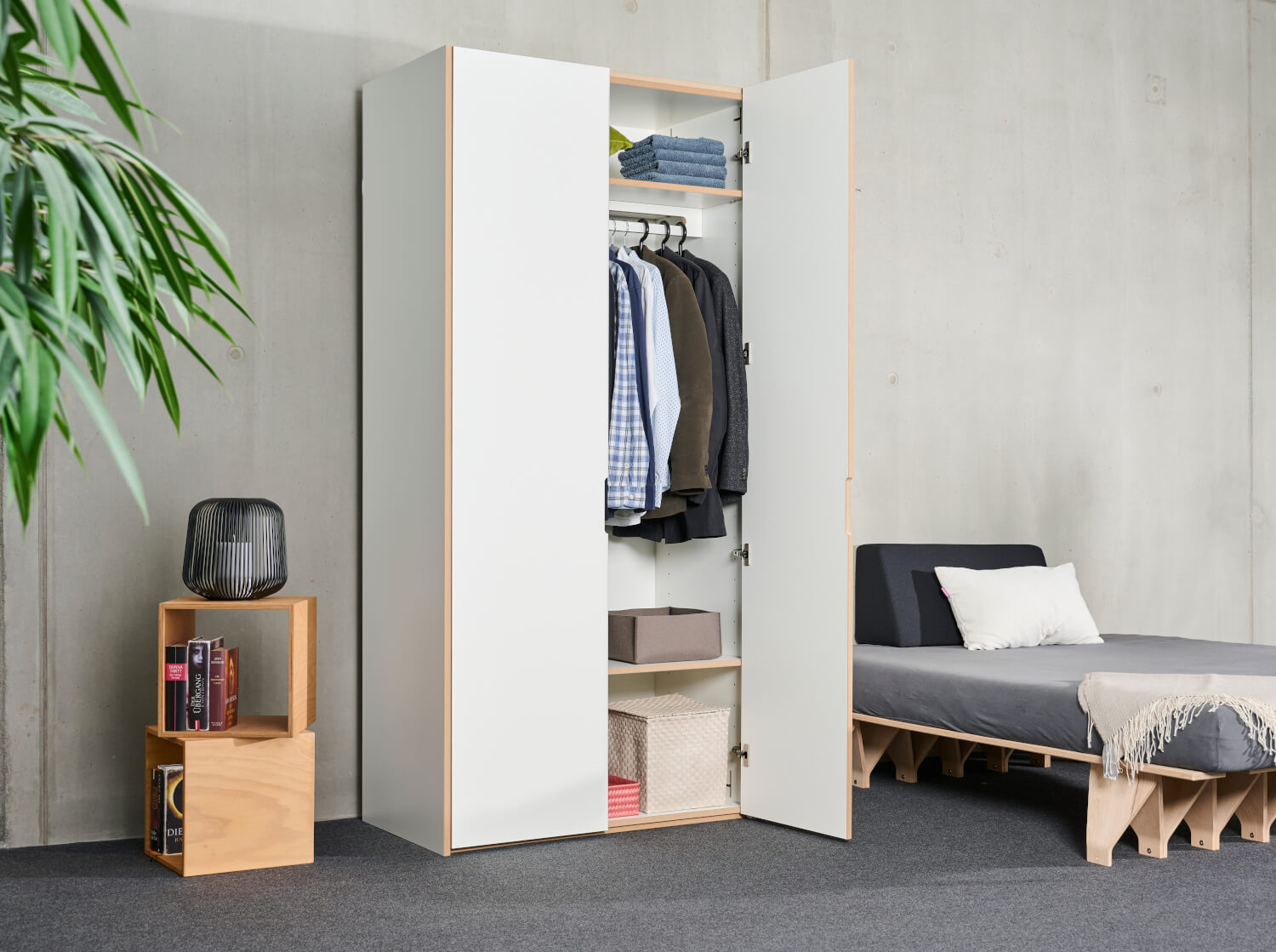 | Lieferung: | Grund- oder Anbaumodul mit 3 Fachböden und einer Kleiderstange sowie Montagematerial. |