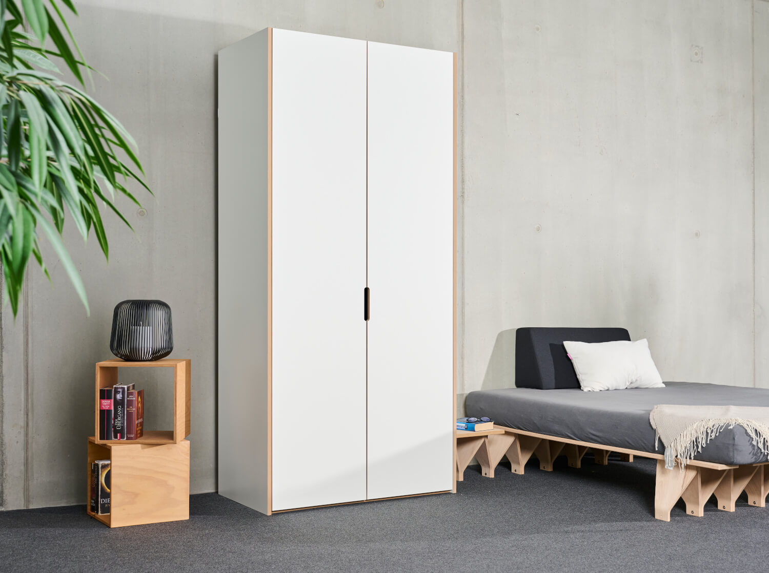 | Details: | Der Aufbau der einzelnen Korpuselemente des Tojo-schrank basiert auf einer cleveren Eckverbindung, die jede Verwendung von Schrauben verzichtbar macht. Der Tojo-schrank wird nur zusammengesteckt, zur Fixierung der einzelnen Teile kommen die mitgelieferten Inbusschlüssel zum Einsatz. |