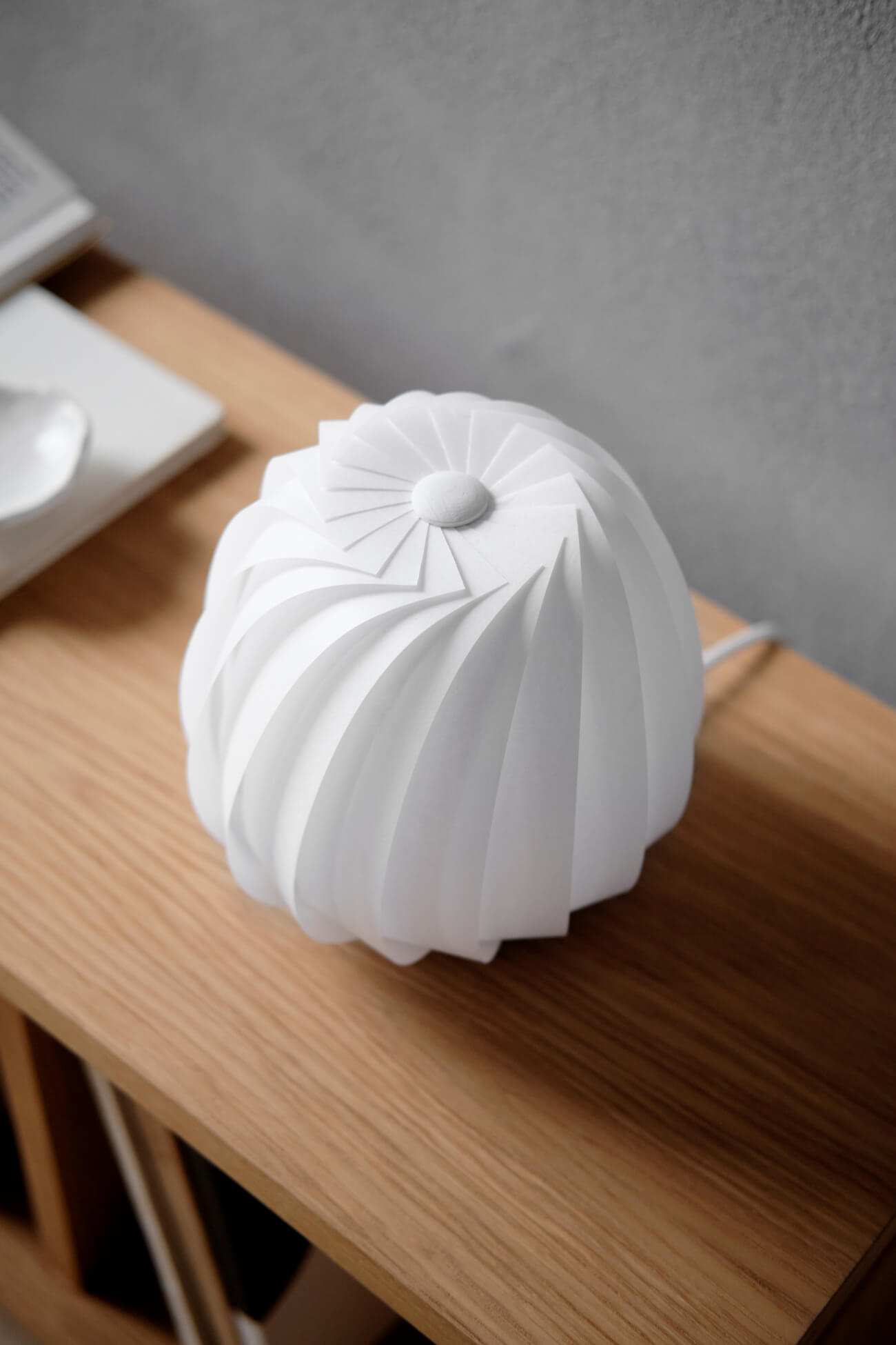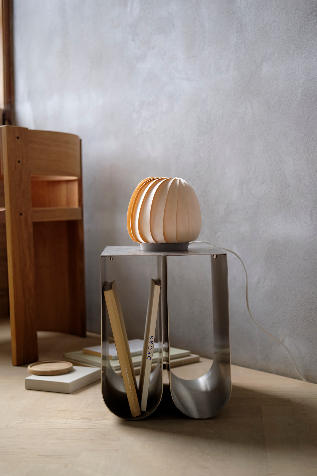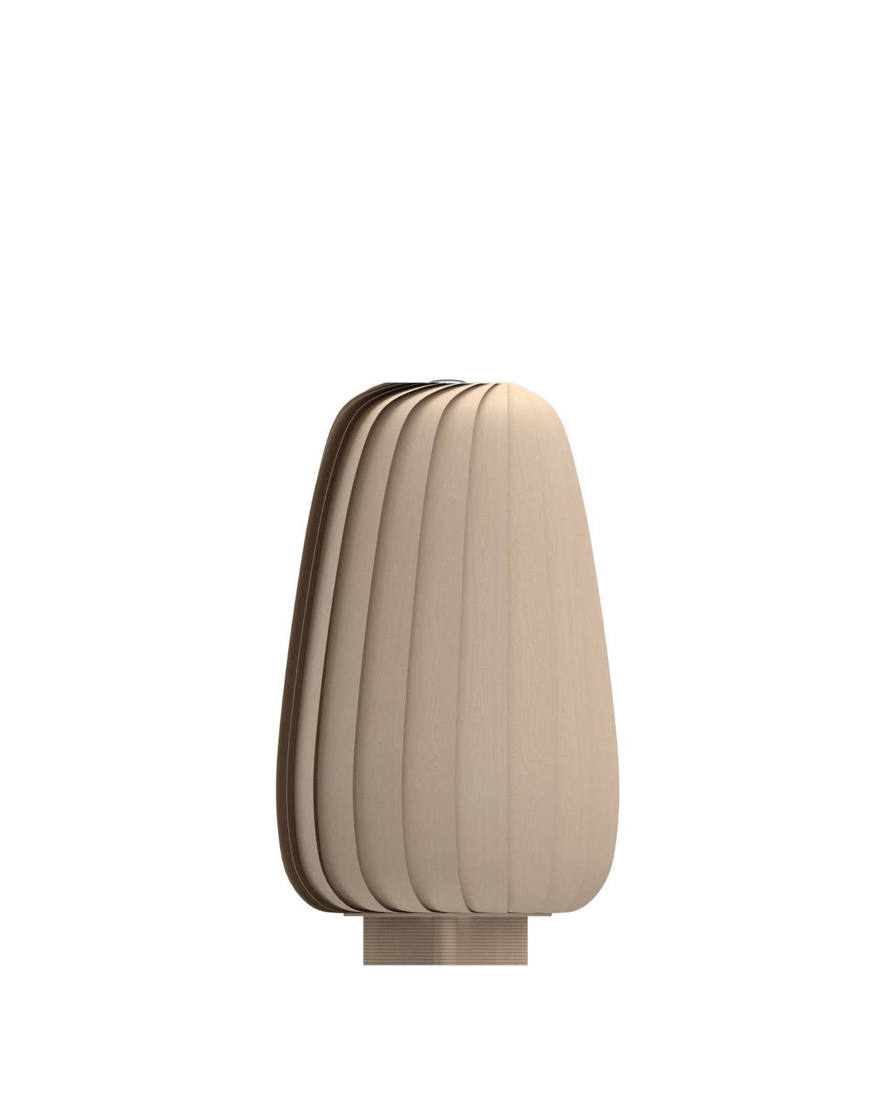 In der Ausführung überzeugt die Leuchte mit einem handgefertigten Schirm aus nachhaltigem Birkensperrholz und einer Höhe von 44 Zentimetern bei einem Durchmesser von 20 Zentimetern. Die raffinierte Konstruktion entstammt dem dänischen Designer Tom Rossau und ist wahlweise in hellen wie dunklen Naturtönen erhältlich. Der stabile Sockel garantiert einen sicheren Stand und ergänzt die harmonische Gesamterscheinung.
