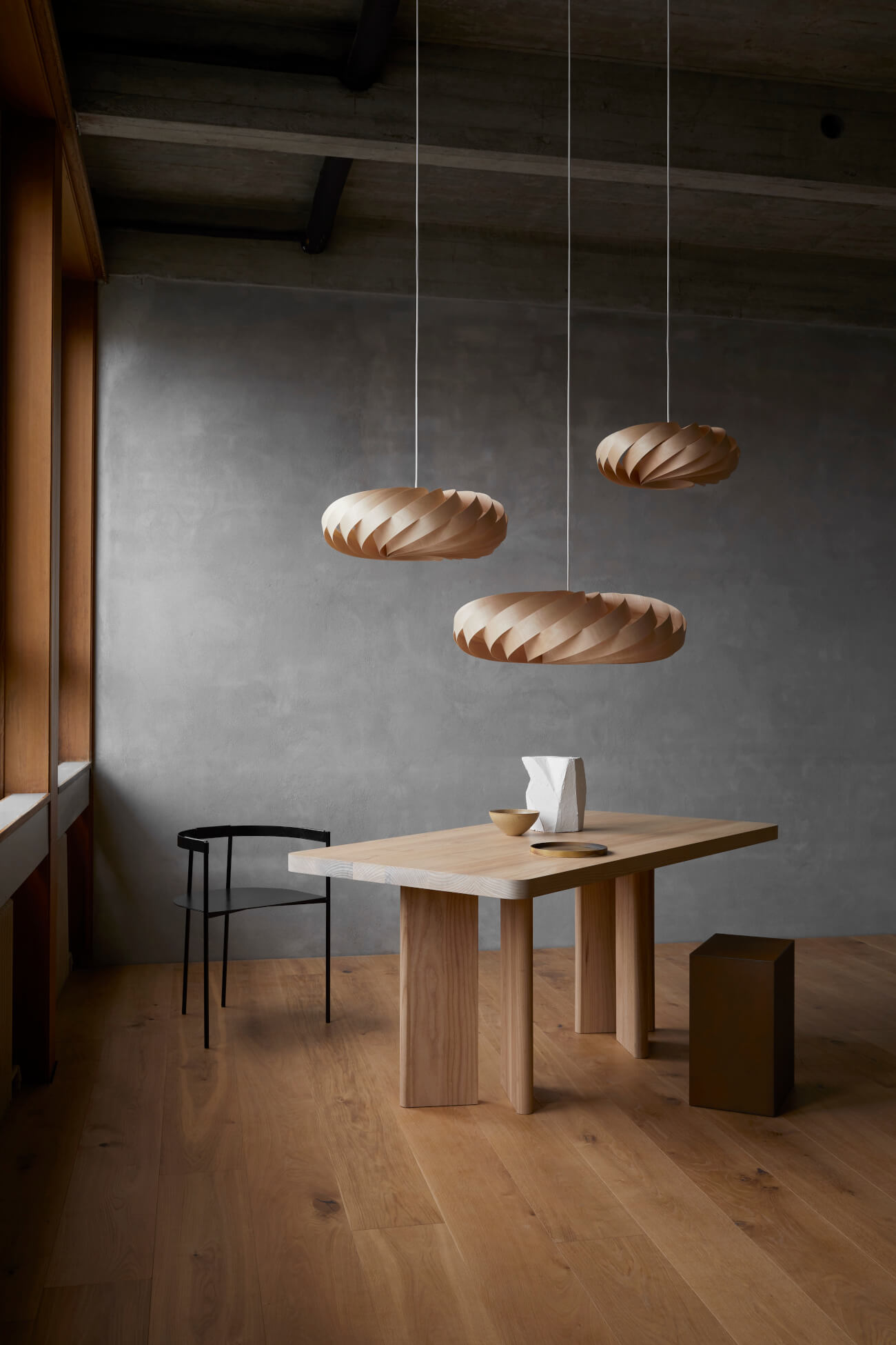 Die Tom Rossau TR5 Pendelleuchte entfaltet in exklusiven Interieurs eine faszinierende Symbiose aus Licht und Form. Raffiniert geschwungen wirkt ihr Schirm wie eine filigrane Skulptur, die jeden Raum mit anspruchsvollem Design akzentuiert. Ob als Solitär über dem Esstisch oder als harmonische Komposition im Entrée, die TR5 Pendelleuchte verströmt eine zurückhaltende Noblesse. Feinstes Licht dringt weich durch das Leuchtenmaterial und setzt filigrane Schattenakzente, die das Ambiente subtil unterstreichen. Die organische Formgebung der Leuchte steht für die gelungene Balance von Ästhetik und Funktion. In modernen Wohnbereichen inszeniert sie eine sanfte Lichtatmosphäre, die sowohl zum Arbeiten als auch zum Entspannen inspiriert. Mit ihrer unverkennbaren Persönlichkeit avanciert die TR5 Pendelleuchte von Tom Rossau zum Mittelpunkt jeder Umgebung. Sorgfältig gearbeitet aus naturbelassenem Birkenholzfurnier oder hochwertigem Polypropylen, besticht die Hängeleuchte mit einem Durchmesser von Ø 40 cm und einer harmonischen Proportion. Das Design stammt von Tom Rossau, der mit variabel wählbaren Oberflächen – wahlweise natur, weiß oder silbergrau – maximale Vielfalt bietet und handwerkliche Präzision eindrucksvoll inszeniert.TR5 Pendelleuchte – Eleganz und Vielseitigkeit in Perfektion