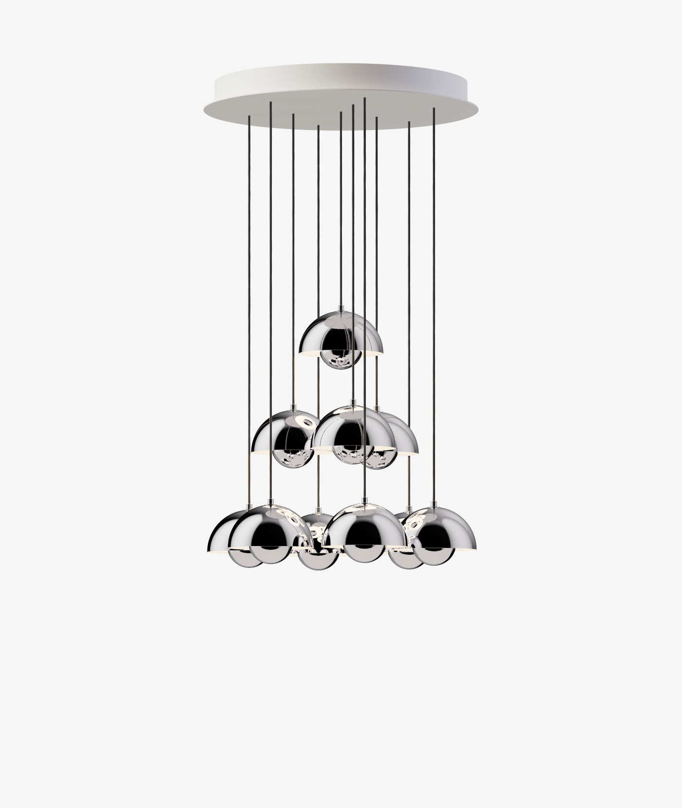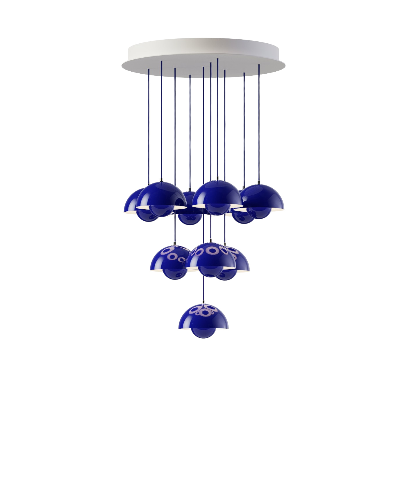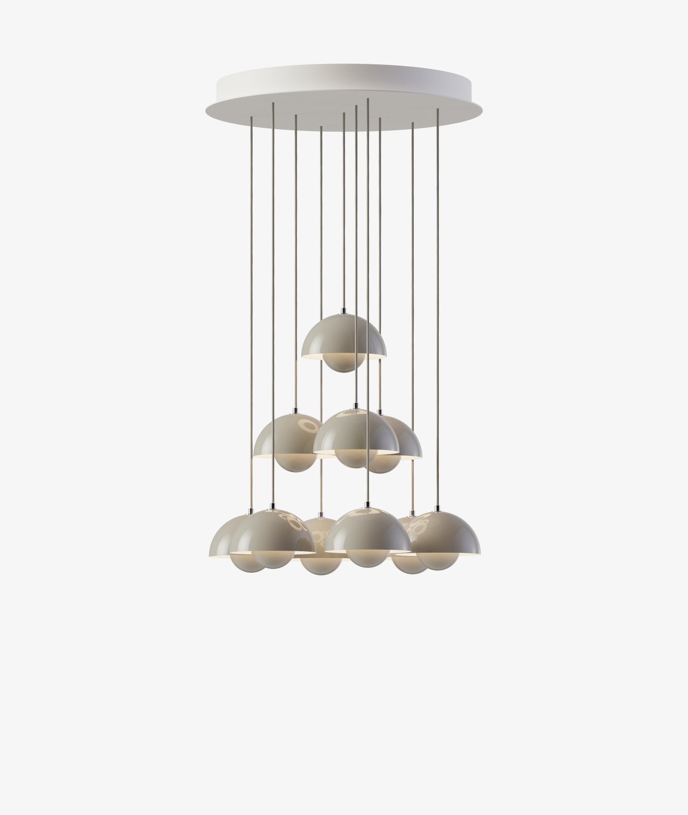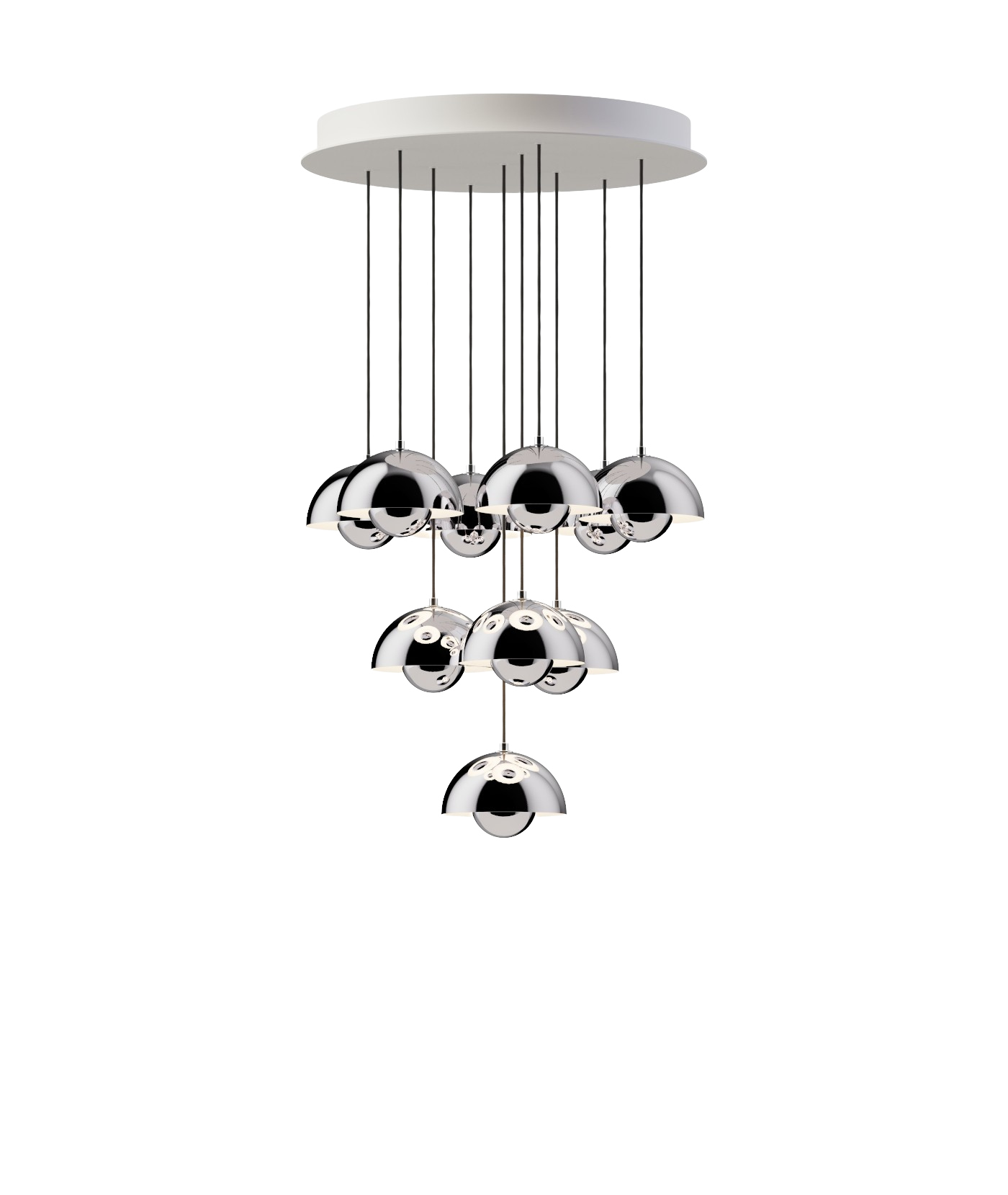 | Hinweis: | Die Kronleuchte besteht aus 10 Flowerpot VP10 Pendelleuchten Anhängern. |