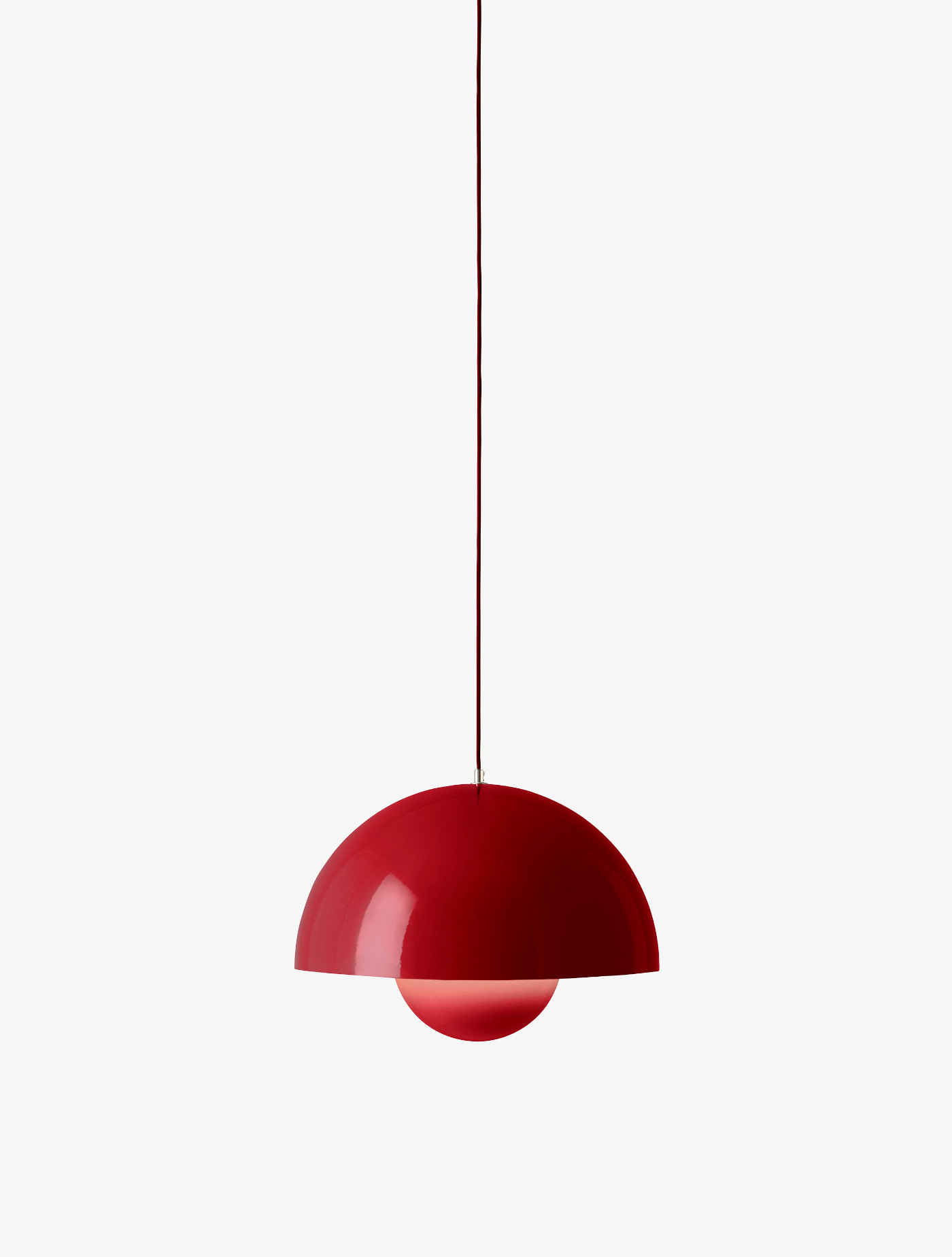 Mit einem Durchmesser von 50 Zentimetern und einer Gesamthöhe von knapp 36 Zentimetern überzeugt die Flowerpot VP2 Pendelleuchte durch ihre großzügige Proportion. Für den Schirm werden hochwertige lackierte Aluminium- oder Edelstahloberflächen verarbeitet, erhältlich in einer selektierten Farbpalette von dezent bis ausdrucksstark. Die Leuchte wird von Verner Panton für &Tradition entworfen und ist je nach Variante mit textilummanteltem Kabel ausgestattet, das die Premium-Qualität unterstreicht.