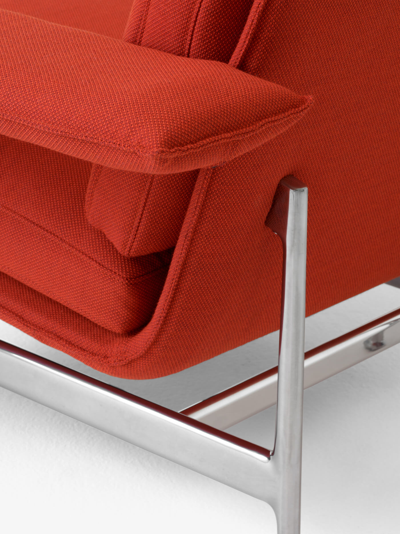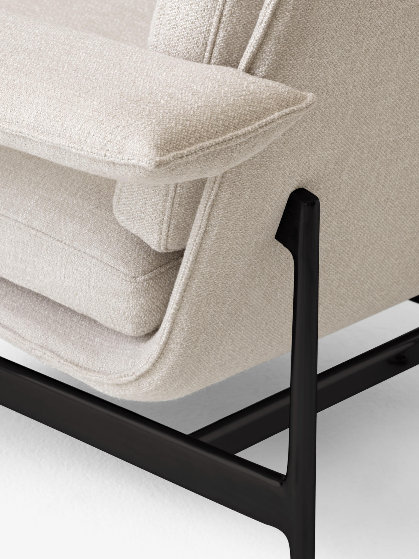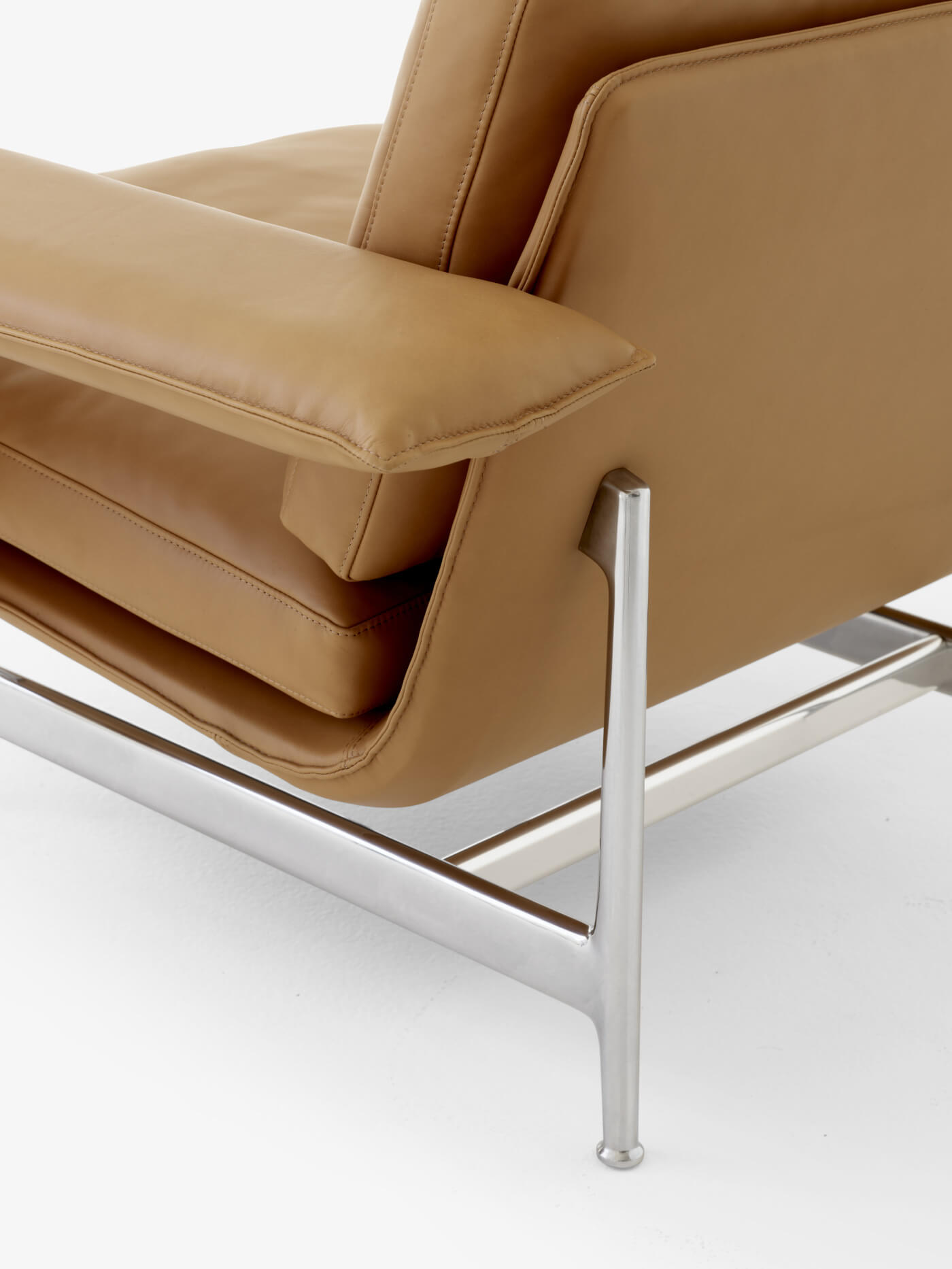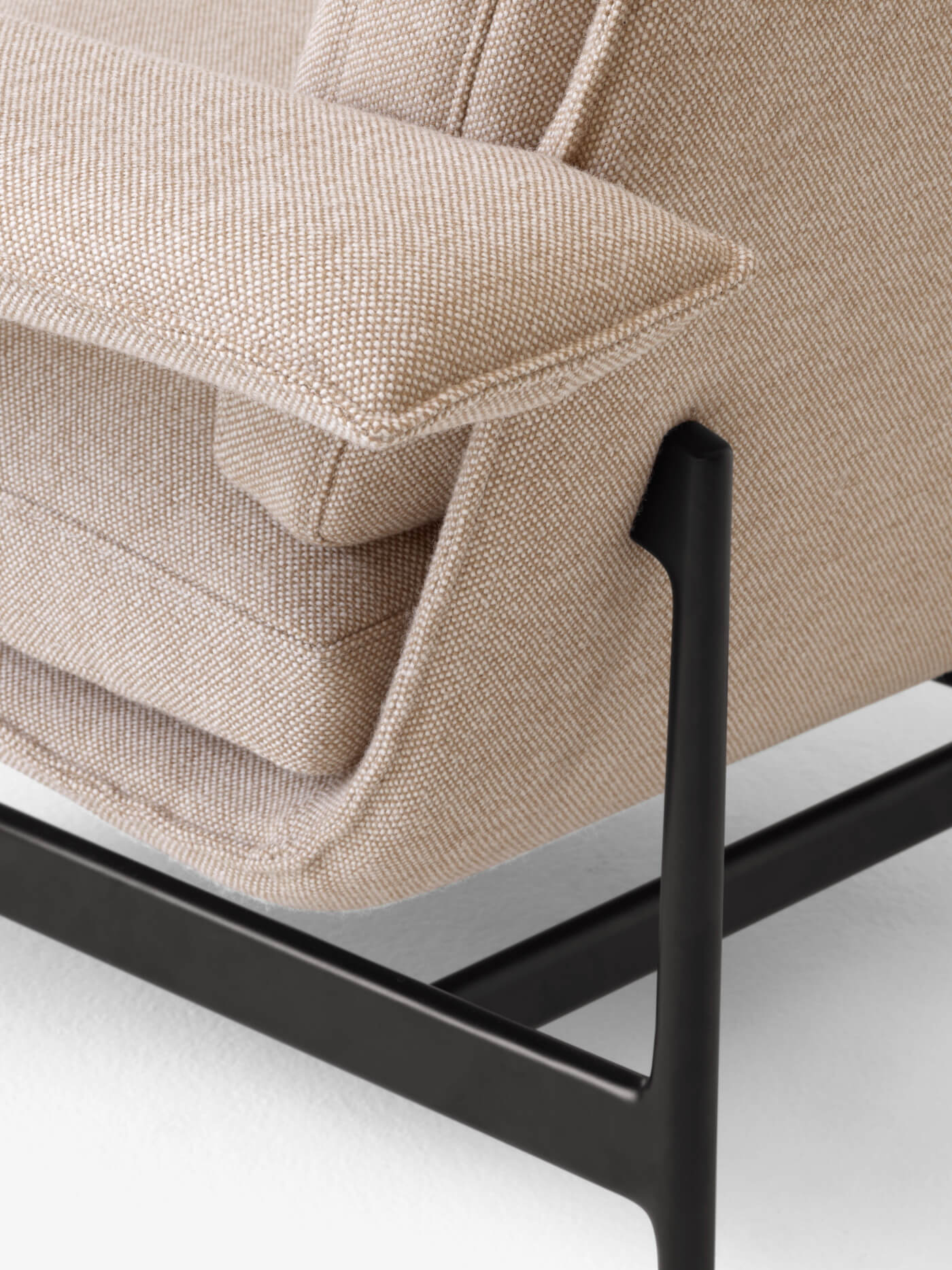 Das stabile Gestell aus pulverbeschichtetem Aluminium verleiht dem Sessel eine leichte und zugleich robuste Struktur. Für den Bezug stehen Ihnen vielfältige Materialien zur Verfügung, darunter hochwertige Stoffe von Kvadrat wie Ecriture und Fiord, sowie exklusive Bezüge aus Schurwolle, Baumwolle, Leinen oder edlem Leder Premium F. Die sorgfältig ausgewählte Polsterung aus hochwertigem Schaumstoff sorgt für ein angenehmes Sitzgefühl und langanhaltenden Komfort.