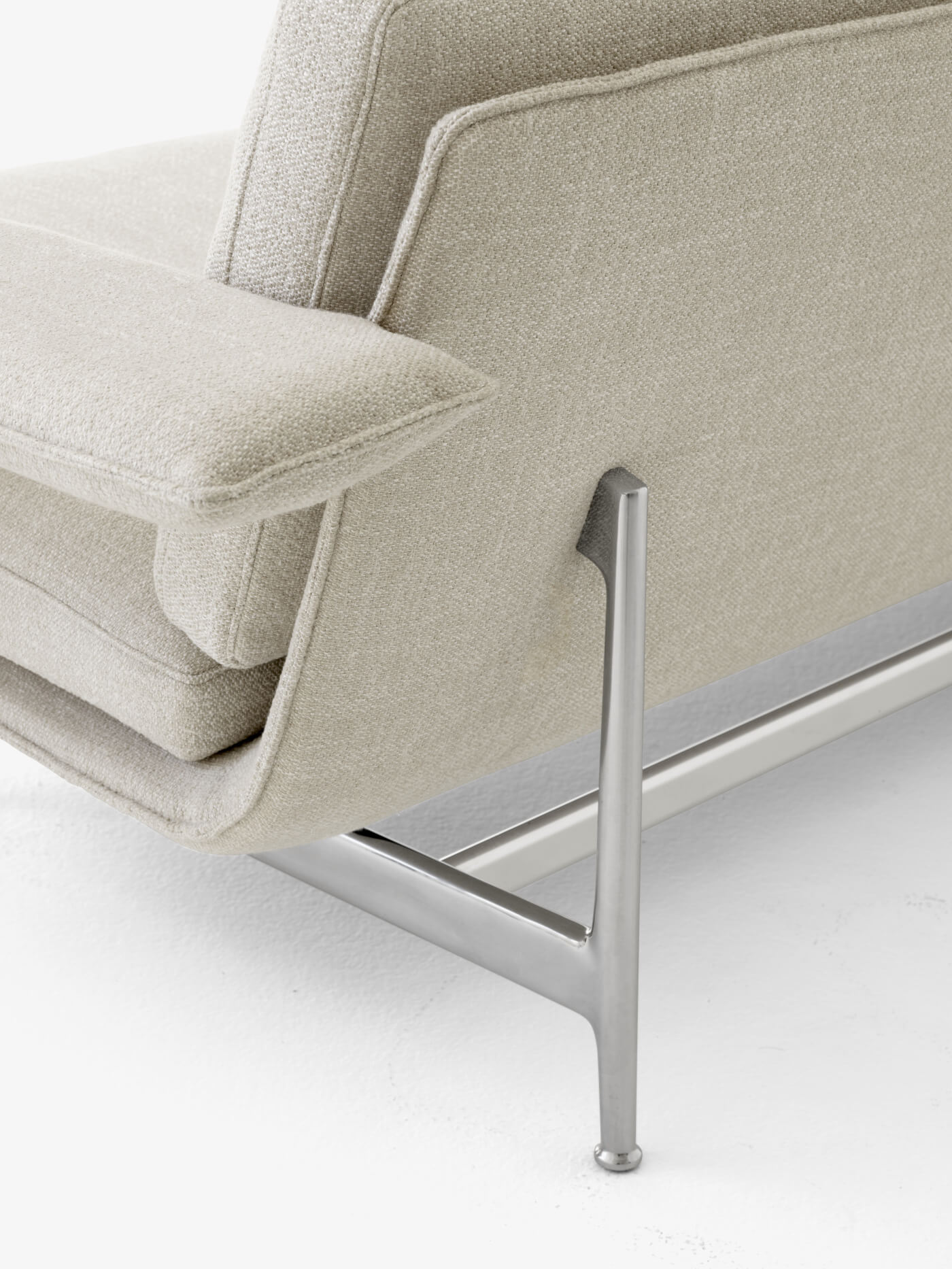 Das von Anderssen & Voll entworfene Sofa überzeugt durch eine Breite von 240 cm, eine Höhe von 74 cm und eine Tiefe von 90 cm. Der Rahmen besteht aus massivem Holz, während hochwertiger Polyurethanschaum für die Polsterung verwendet wurde. Die Bezugsauswahl reicht von exklusiven Stoffqualitäten bis zu feinsten Ledervarianten in vielfältigen Farben, wodurch sich individuelle Akzente setzen lassen. Ergänzt wird das Design durch dezente Metallfüße und sorgfältig ausgeführte Nähte.