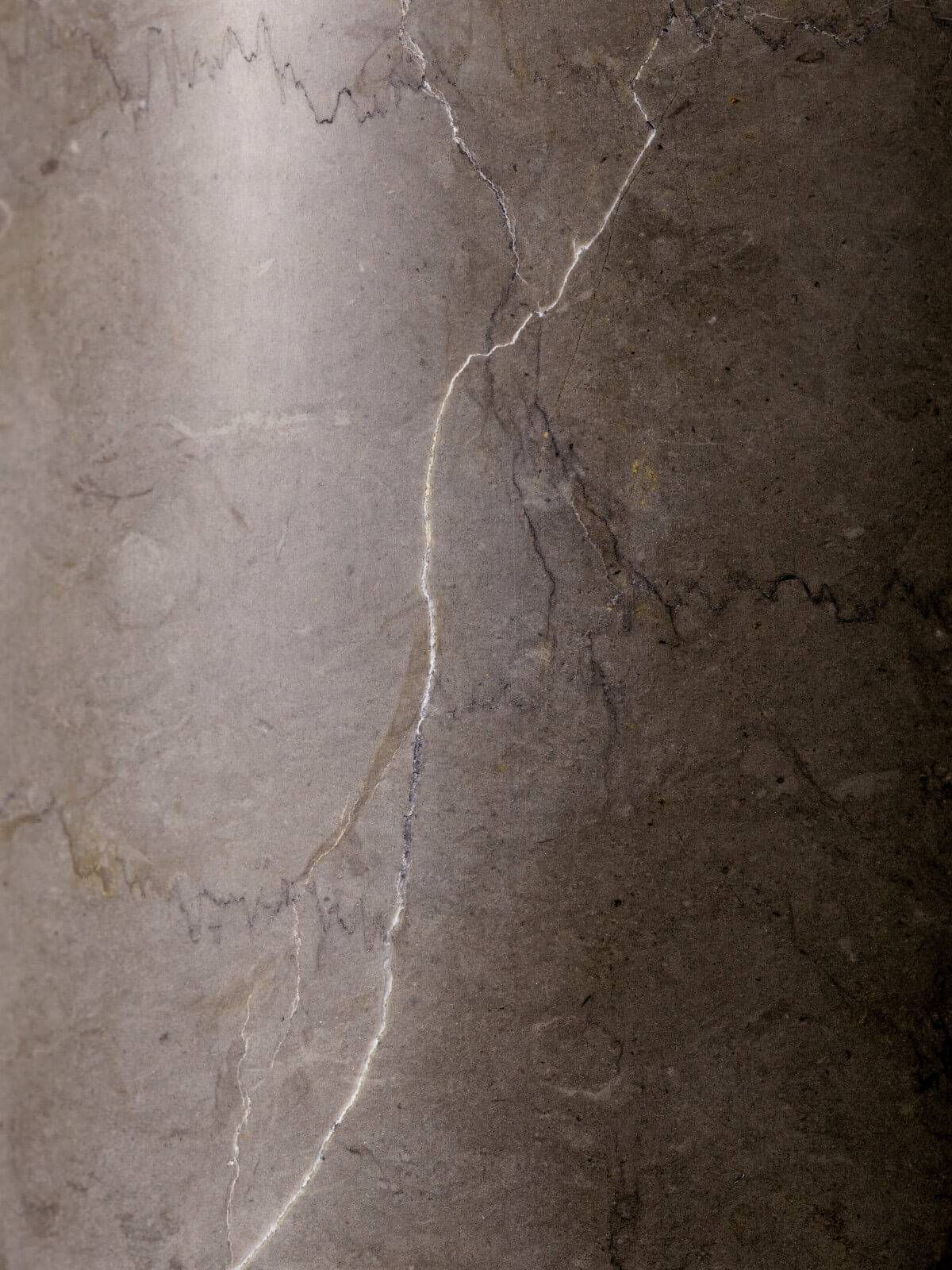 | Material: | Steinsockel mit Glasschirm und Details aus Metall. Mundgeblasenes Glas. Stein in Form geschnitten. |