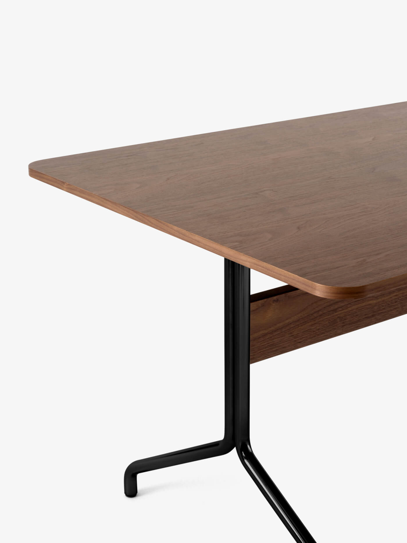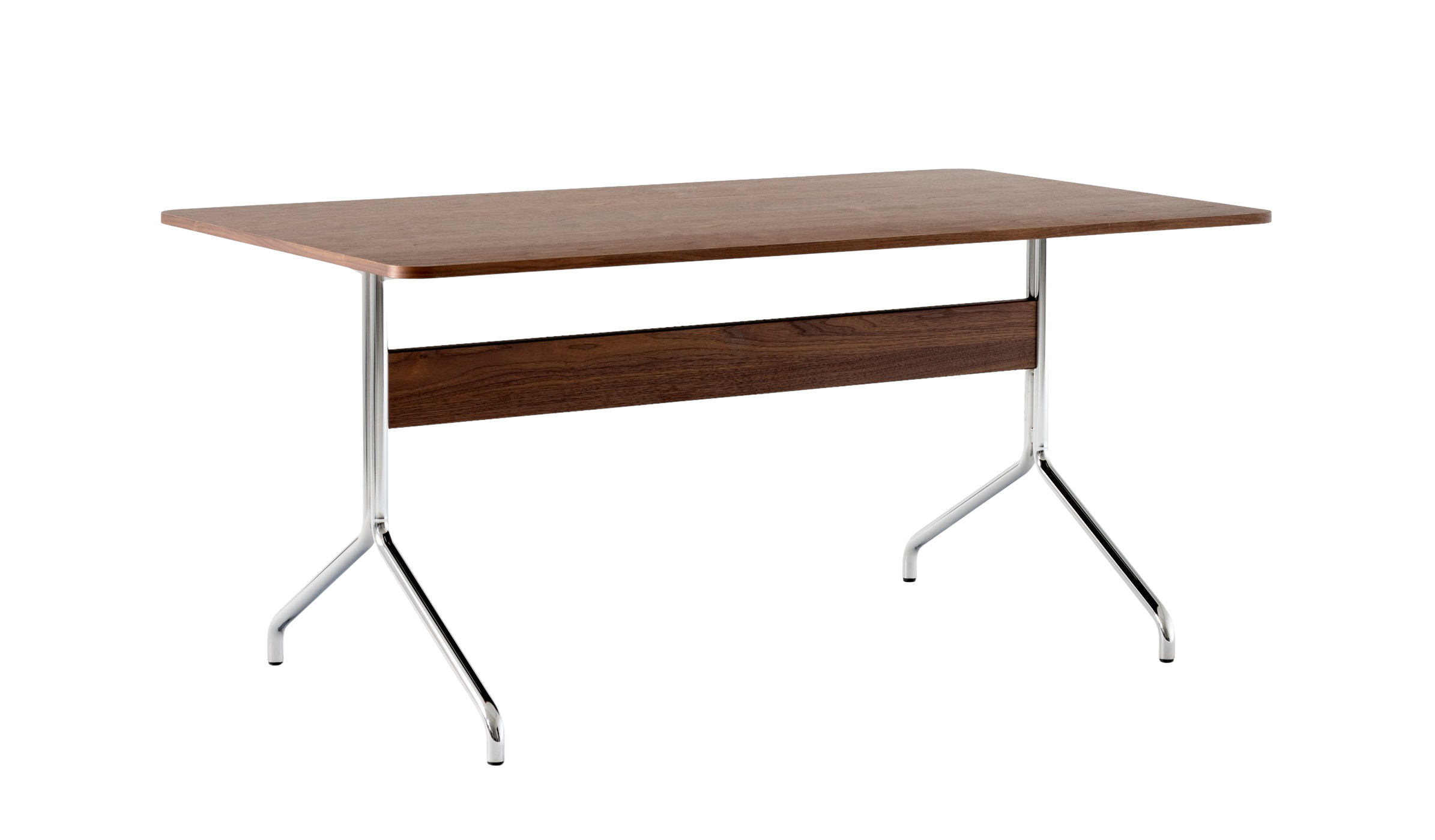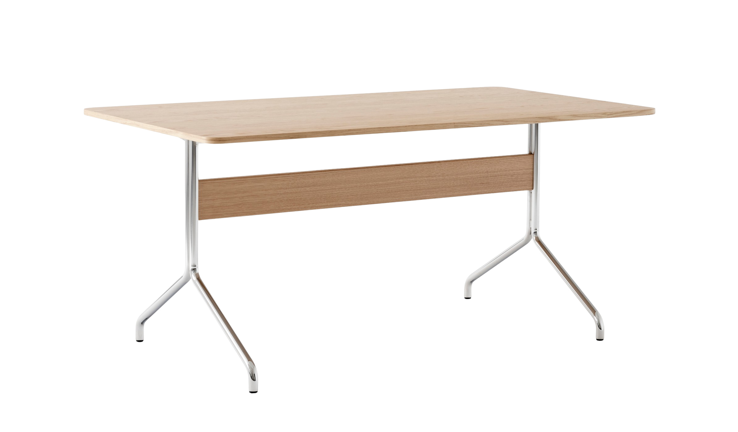Gefertigt aus hochwertigem Massivholz oder Echtholzfurnier und ergänzt durch ein pulverbeschichtetes Stahlgestell, misst der Pavilion AV18 Tisch 160 x 90 cm. Vom renommierten Designerduo Andersen & Voll für &Tradition entworfen, sind verschiedene Ausführungen in Eiche oder Walnuss sowie Gestellfarben in Schwarz oder Chrom erhältlich.