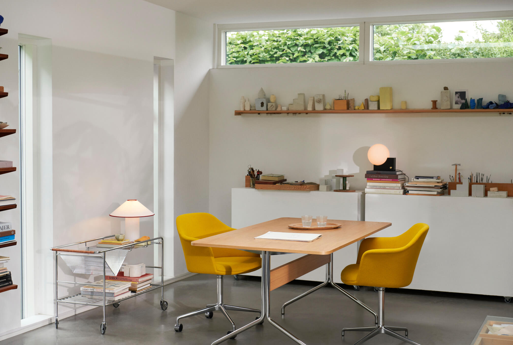 | Hinweis: | Der Pavilion Tisch ist in drei Größen verfügbar: Die große Version für sechs bis acht Personen passt perfekt in Besprechungsräume oder Büro-Essbereiche, während die kleinere Vier-Personen-Variante ideal den Wohnbereich ergänzt. |