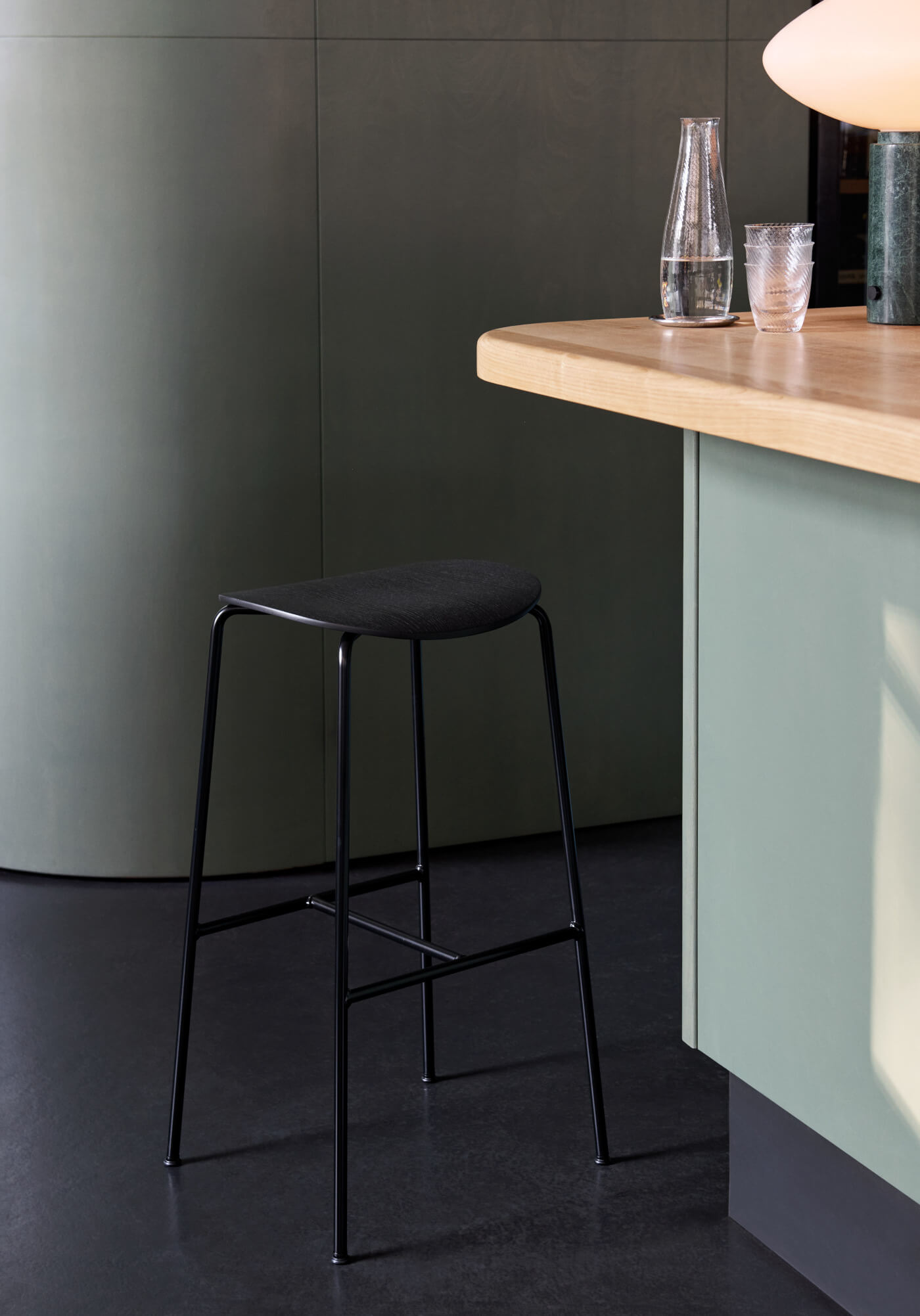 Die Konstruktion des Pavilion AV38 Barhockers basiert auf einem robusten Stahlgestell, das wahlweise in verschiedenen Farben erhältlich ist. Das Gestell ist mit praktischen Plastikgleitern ausgestattet, die den Boden schützen und das Verschieben des Barhockers erleichtern. Die Sitzfläche ist in den hochwertigen Holzarten Eiche oder Walnuss erhältlich und verleiht dem Barstuhl einen natürlichen, warmen Charakter. Dadurch fügt sich der Barhocker harmonisch in unterschiedlichste Küchen- und Wohnstile ein – von modern bis klassisch.