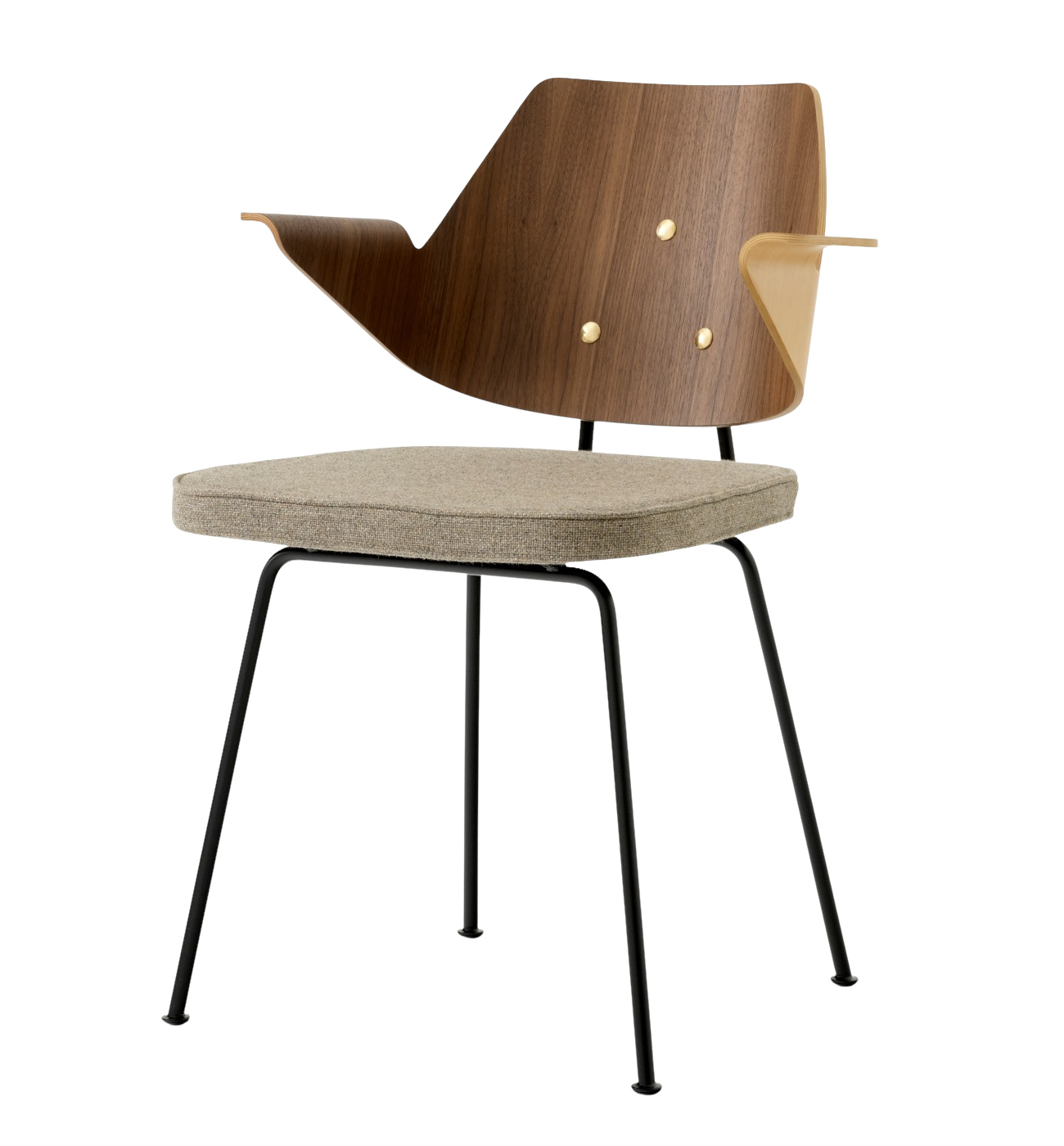 | Material: | Walnuss- und Buchenfurnier, pulverbeschichtetes Stahlrohr und Stahlstab, HR-Schaum. |