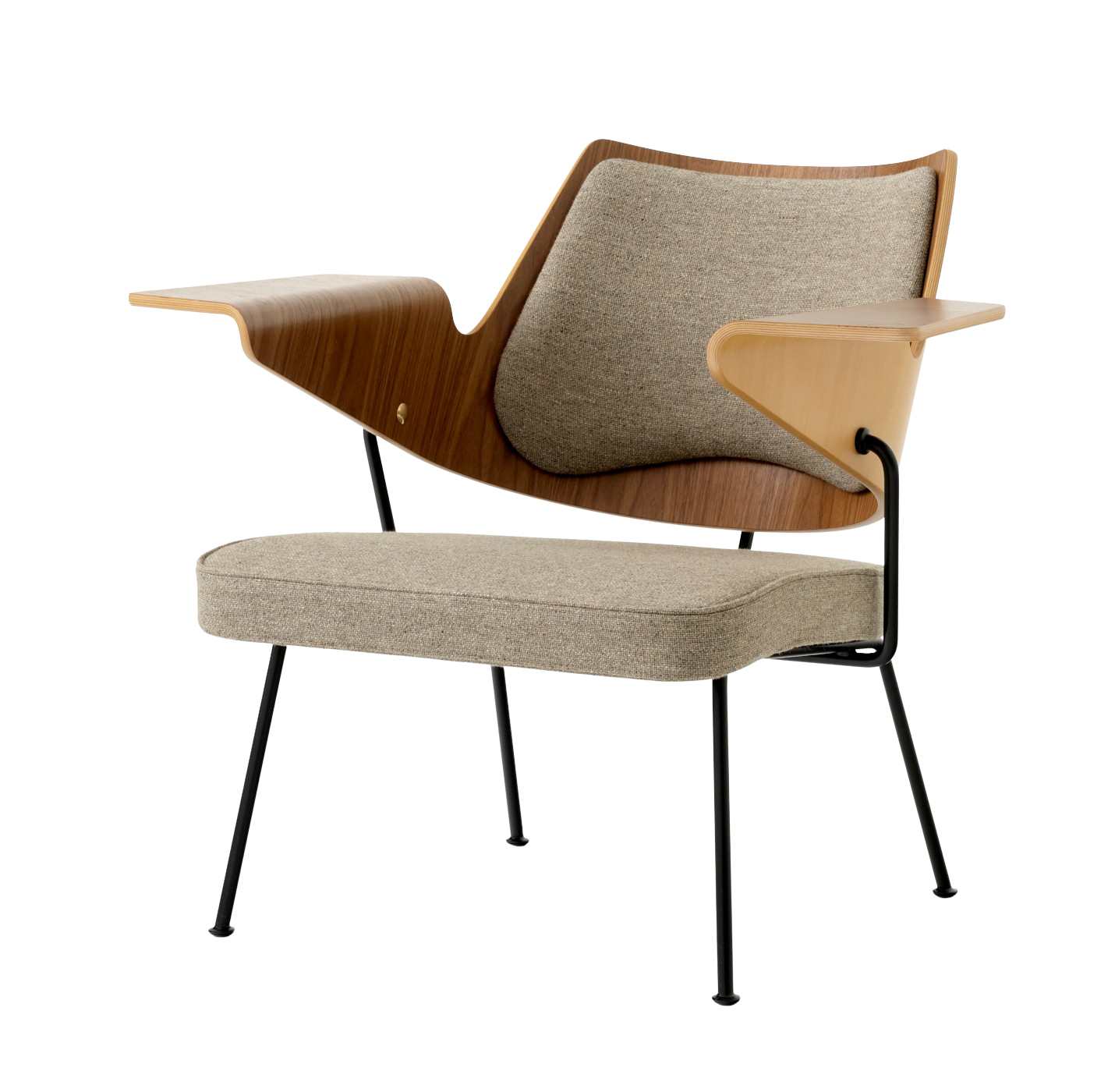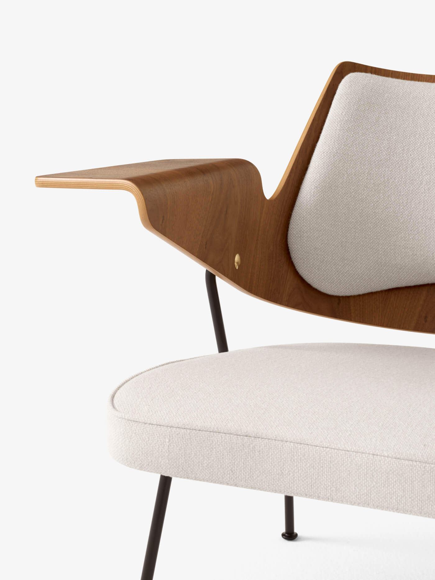 | Material: | Walnuss- und Buchenfurnier, pulverbeschichtetes Stahlrohr und Stahlstab, HR-Schaum. |