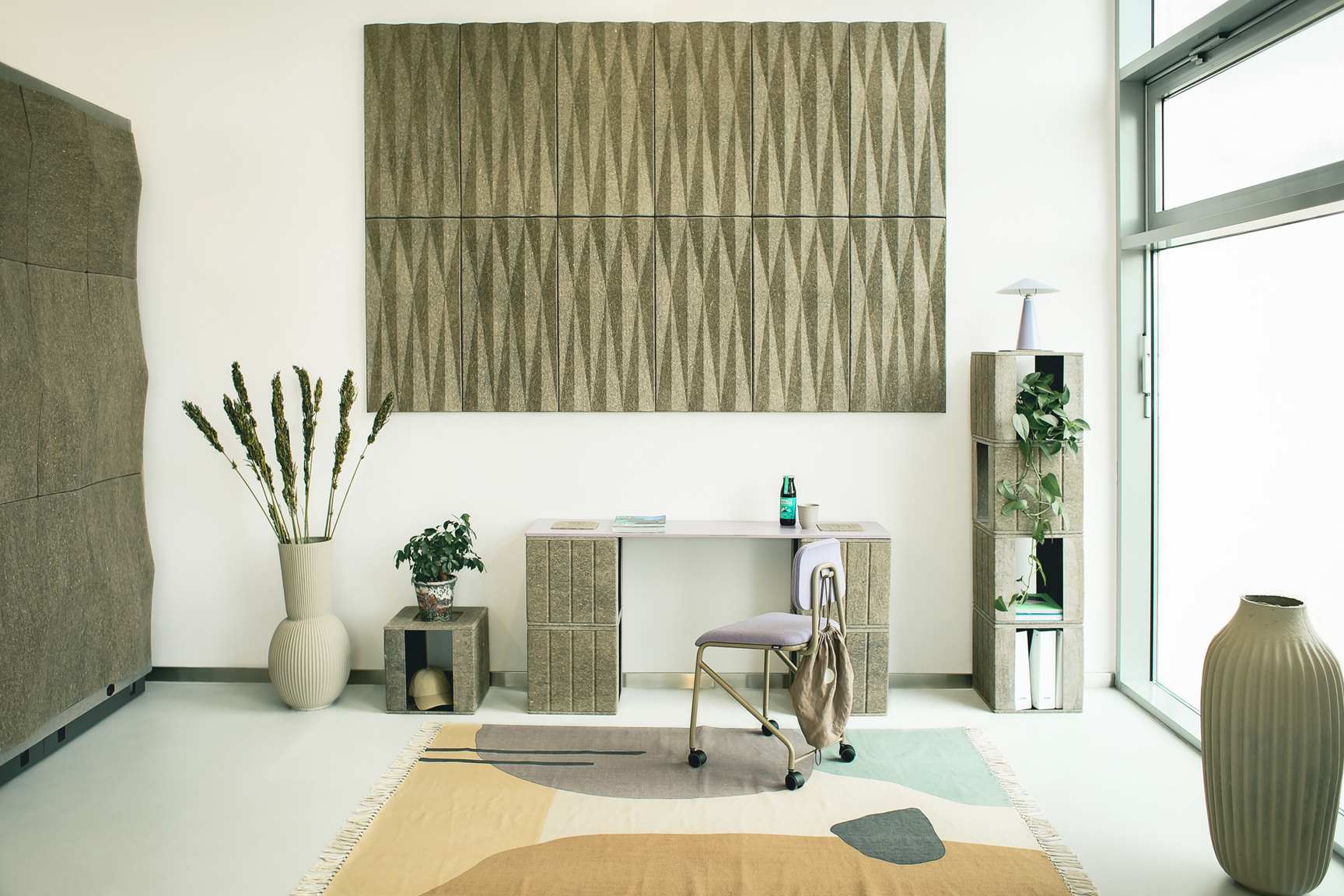 | Details: | In den modernen Akustikpaneelen VANK_DIAMOND vereinen sich umweltorientierte Werte mit den urmenschlichen Bedürfnissen nach Wohlbefinden und Gesundheit. Konsequent nach dem Nachhaltigkeitsprinzip entwickelt, leisten sie einen wesentlichen Beitrag zu einer Kreislaufwirtschaft. Bei ihrer Herstellung werden erneuerbare Materialien, nachwachsende Rohstoffe sowie Rezyklate verwendet, aus denen, mithilfe der firmeneigenen VANK-Technologie, schallabsorbierende und geräuschdämpfende Formen erzeugt werden. |