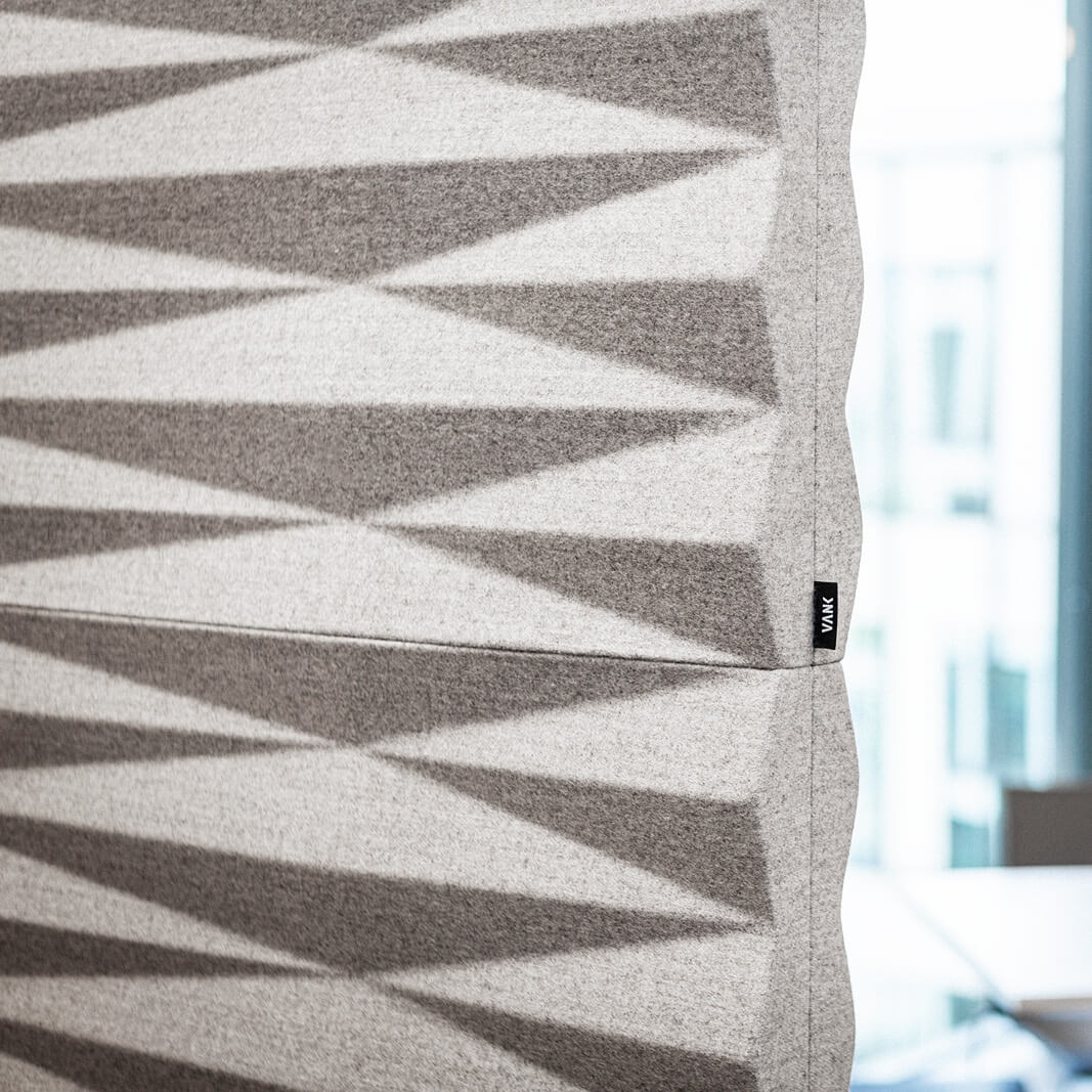 | Akustik: | Die dreidimensionale Struktur der VANK_Paneele garantiert eine optimale Zerstreuung der Schallwellen und weist einen Schallabsorptionsgrad von αw = 0,90 auf. |
