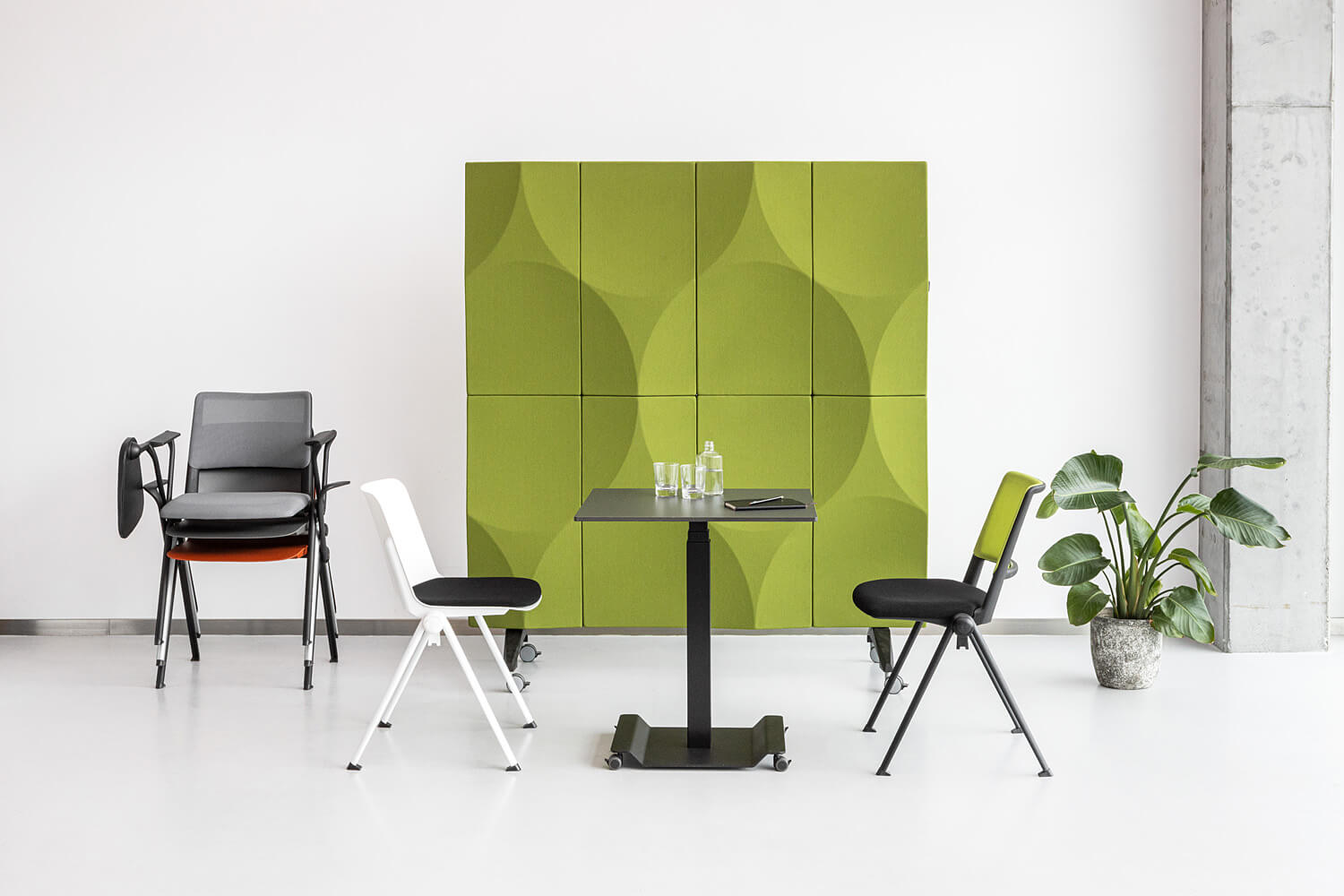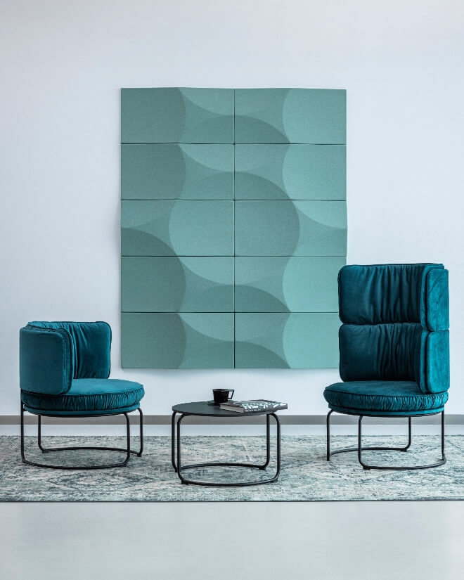 | Hinweis: | Die Akustikpaneele können frei konfiguriert werden, um kreative Gestaltungslösungen für Büros, öffentliche Räume und private Wohnungen zu schaffen. Aus denen lassen sich beeindruckende Akustikbilder mit den Abmessungen von 160 x 240 cm gestalten, die sowohl vertikal als auch horizontal aufgehängt werden können. |