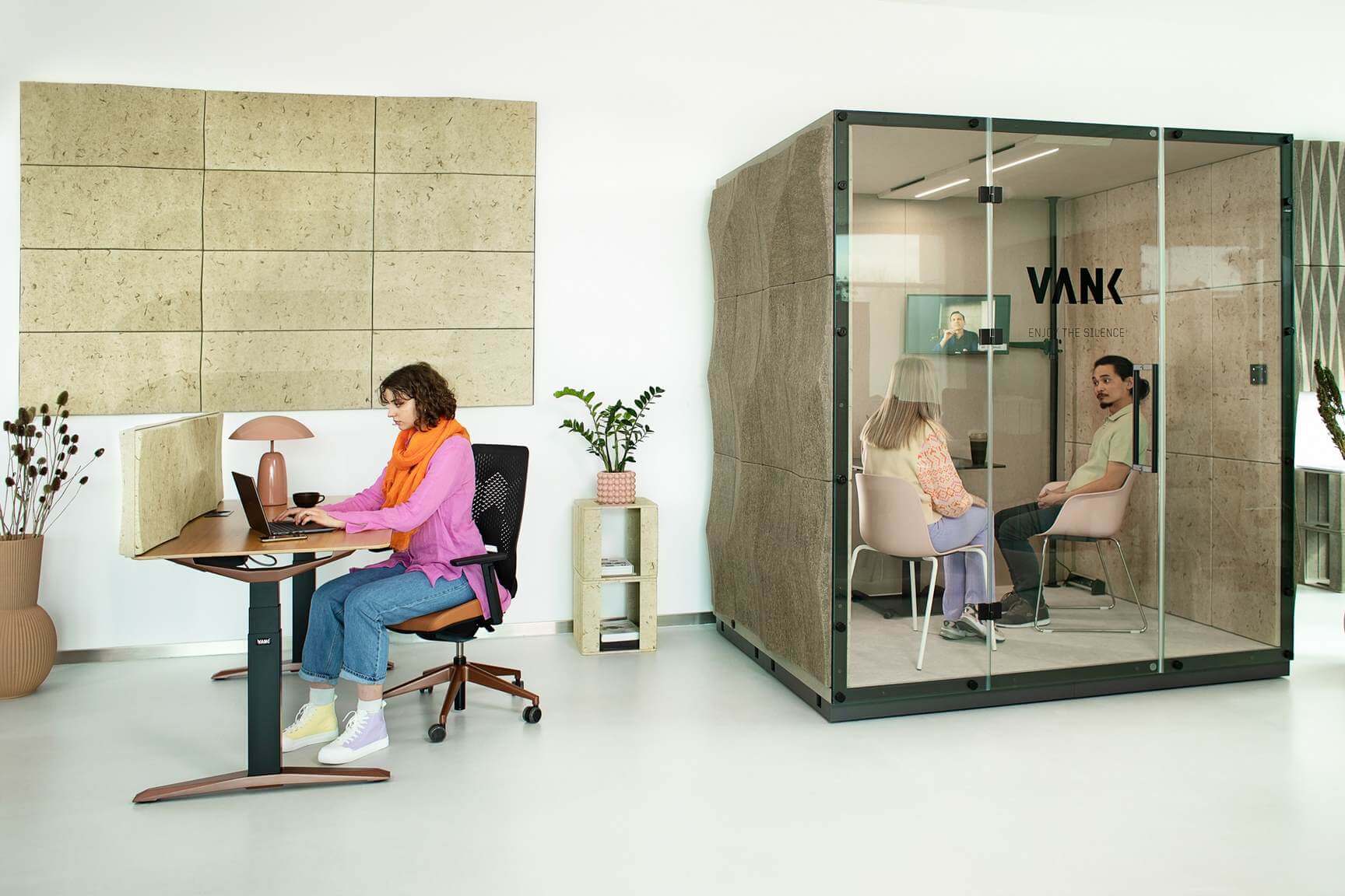 | Details: | In den modernen Akustikpaneelen VANK_ELLIPSE vereinen sich umweltorientierte Werte mit den urmenschlichen Bedürfnissen nach Wohlbefinden und Gesundheit. Konsequent nach dem Nachhaltigkeitsprinzip entwickelt, leisten sie einen wesentlichen Beitrag zu einer Kreislaufwirtschaft. Bei ihrer Herstellung werden erneuerbare Materialien, nachwachsende Rohstoffe sowie Rezyklate verwendet, aus denen, mithilfe der firmeneigenen VANK-Technologie, schallabsorbierende und geräuschdämpfende Formen erzeugt werden. |