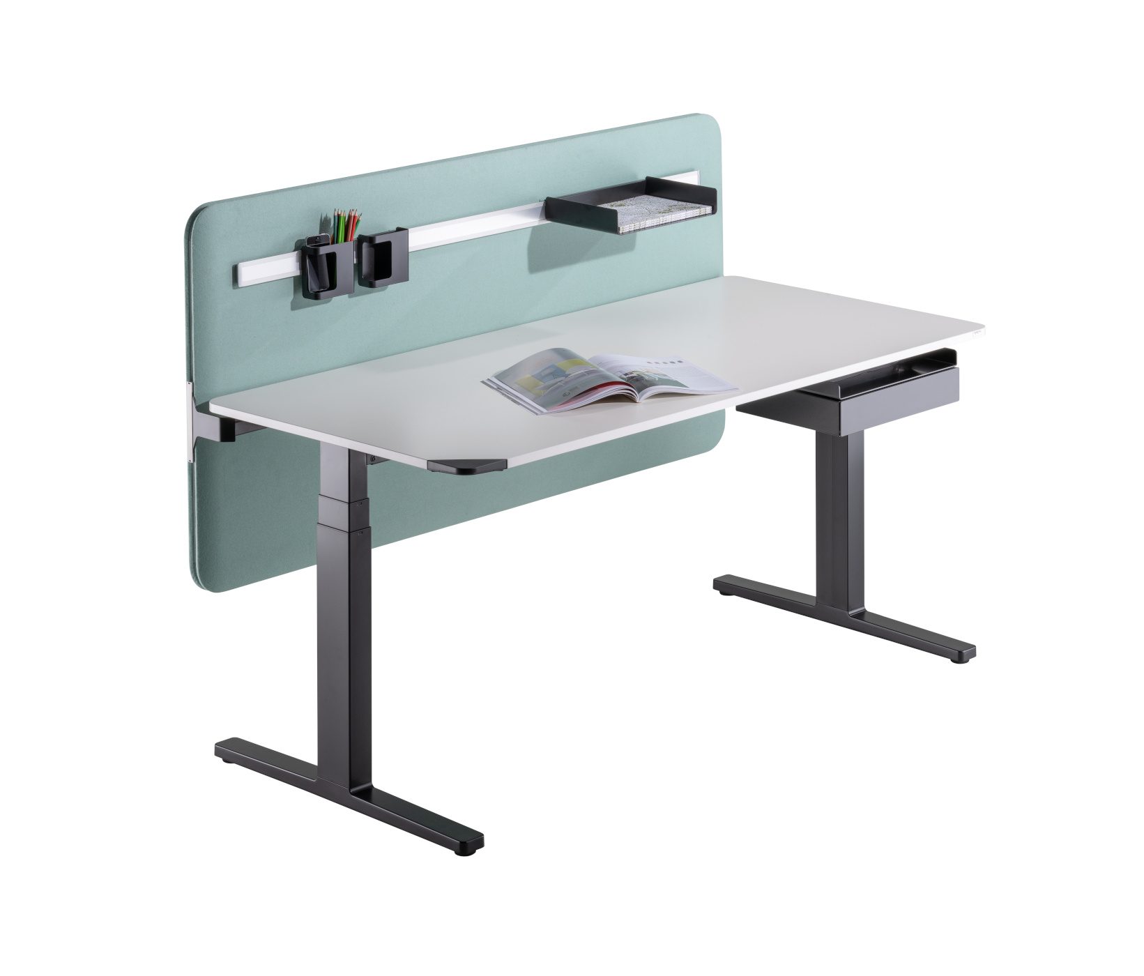Winea Flow Schreibtisch mit Akustik-Tischtrennwand