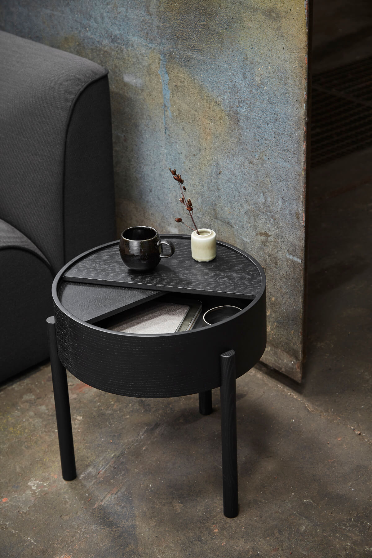 | Details: | Der Woud Arc Beistelltisch vereint skandinavisches Design mit funktionaler Eleganz. Die drehbare Tischplatte offenbart cleveren Stauraum – perfekt für Wohnzimmer, Lounge oder Büro mit Stil. |