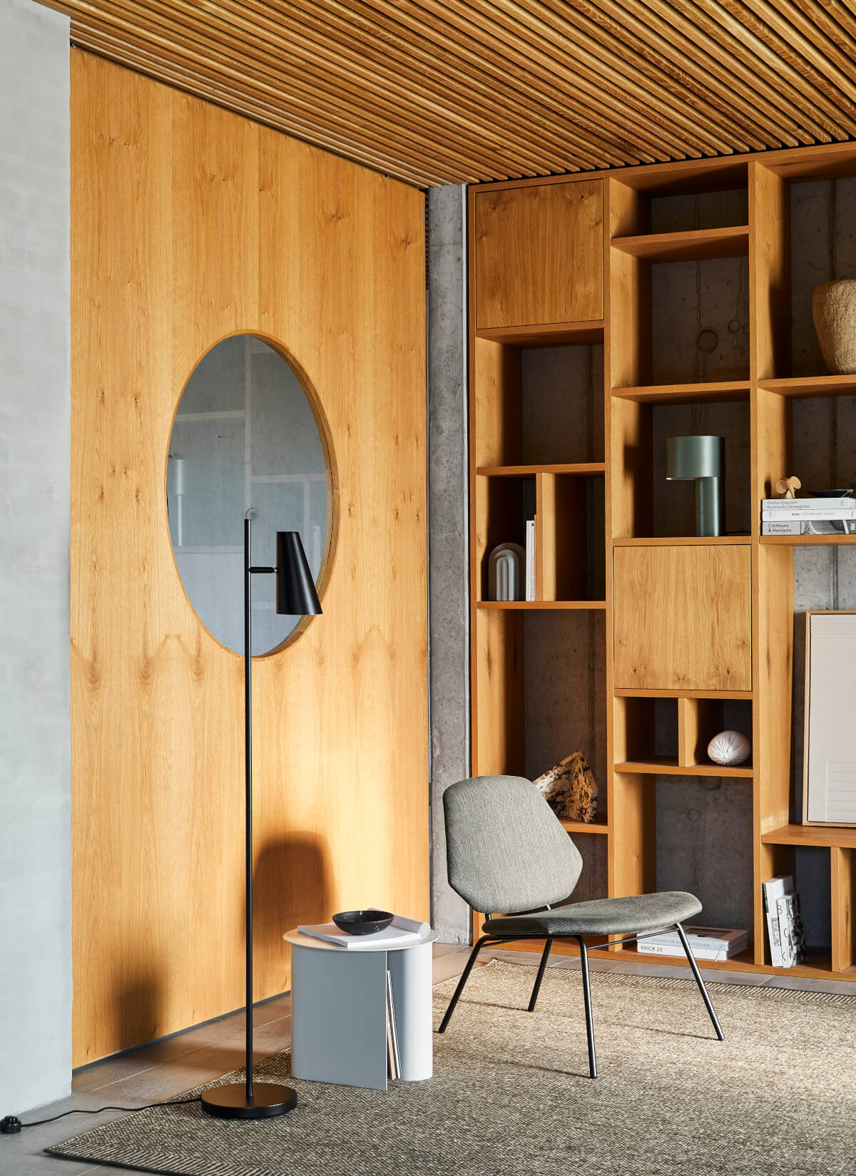Linn High Vertical Stehleuchte, eiche natur / bronzegrau
