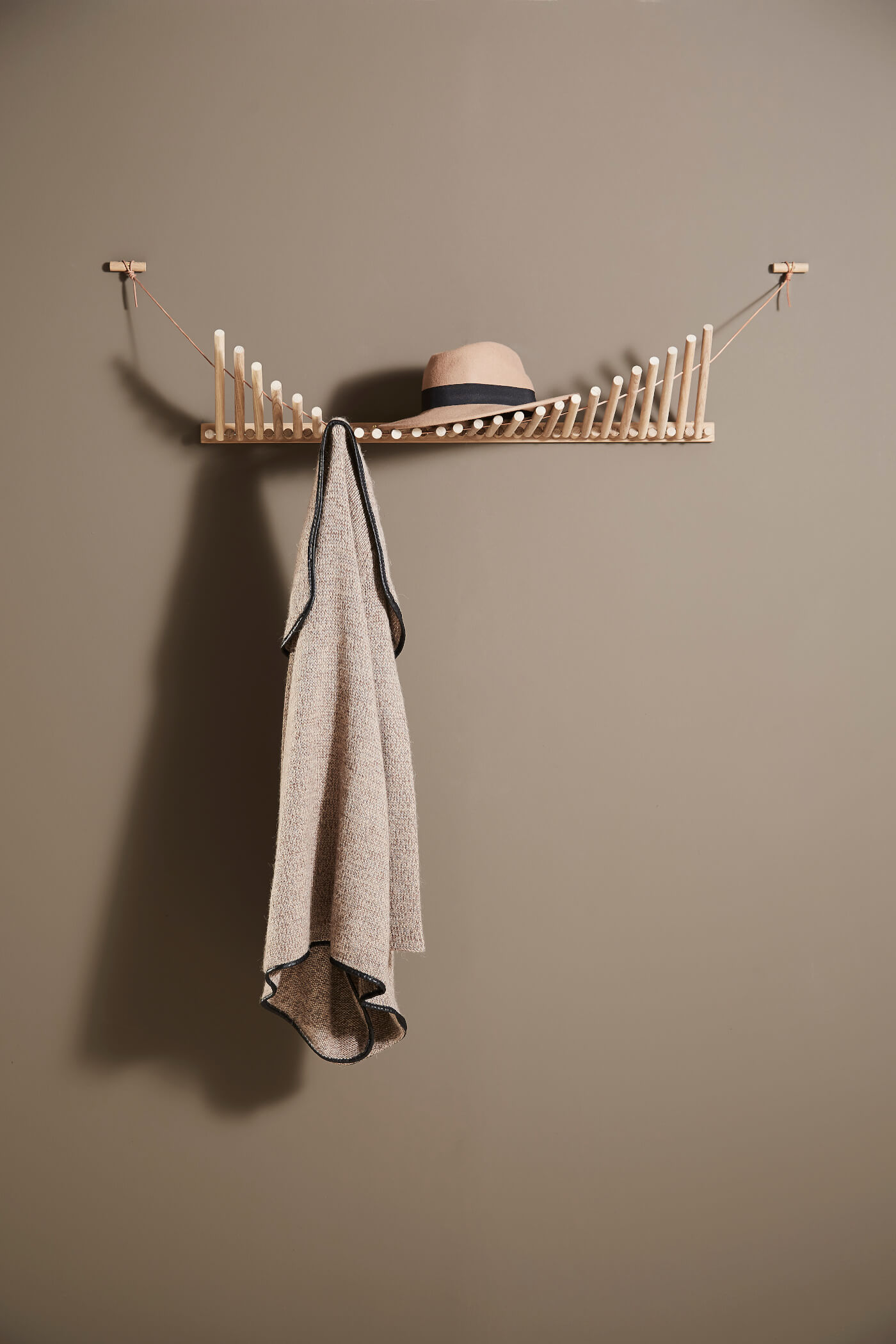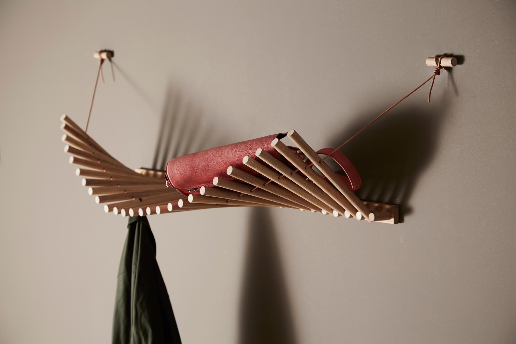 | Hinweis: | Jede Stange fungiert als Aufhänger. Die Garderobe ist modern in ihrem Ausdruck, aber das lebendige Leder gibt Knaegt seinen Charakter. |