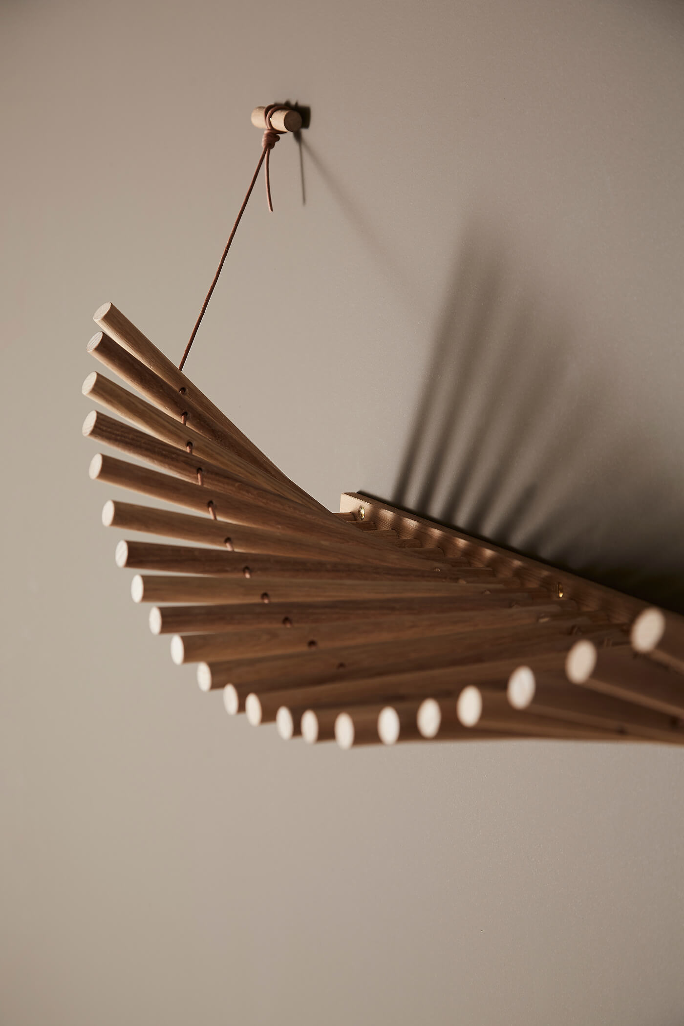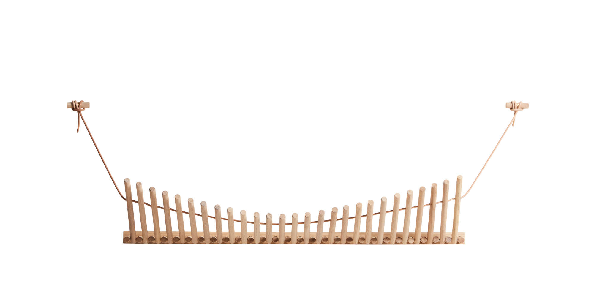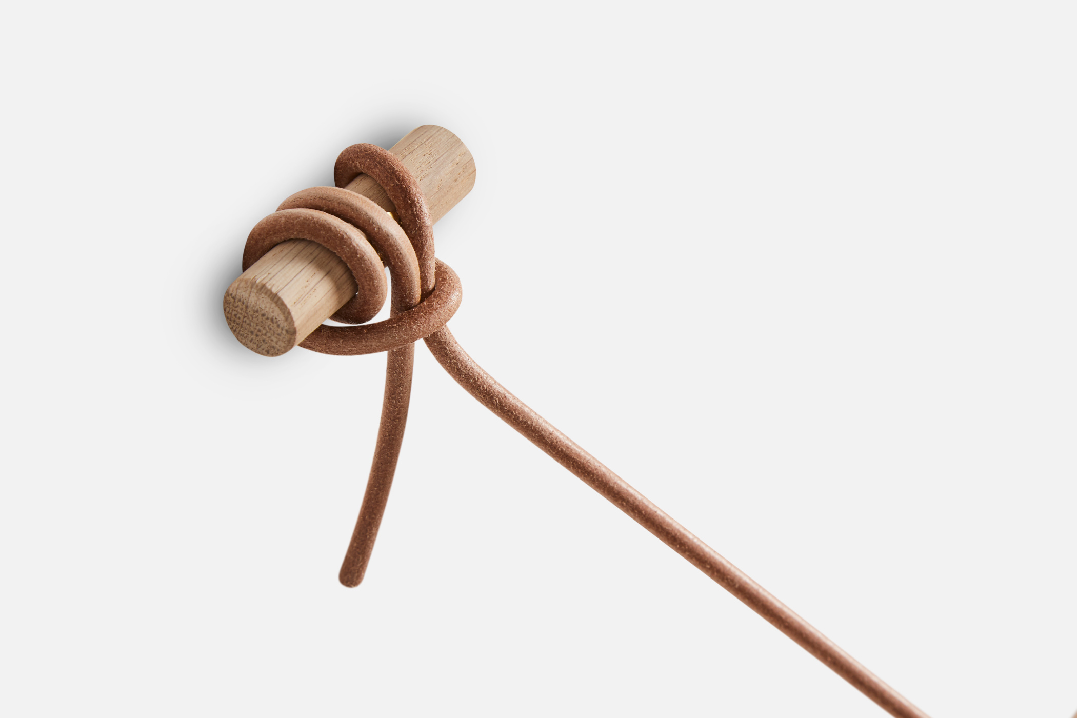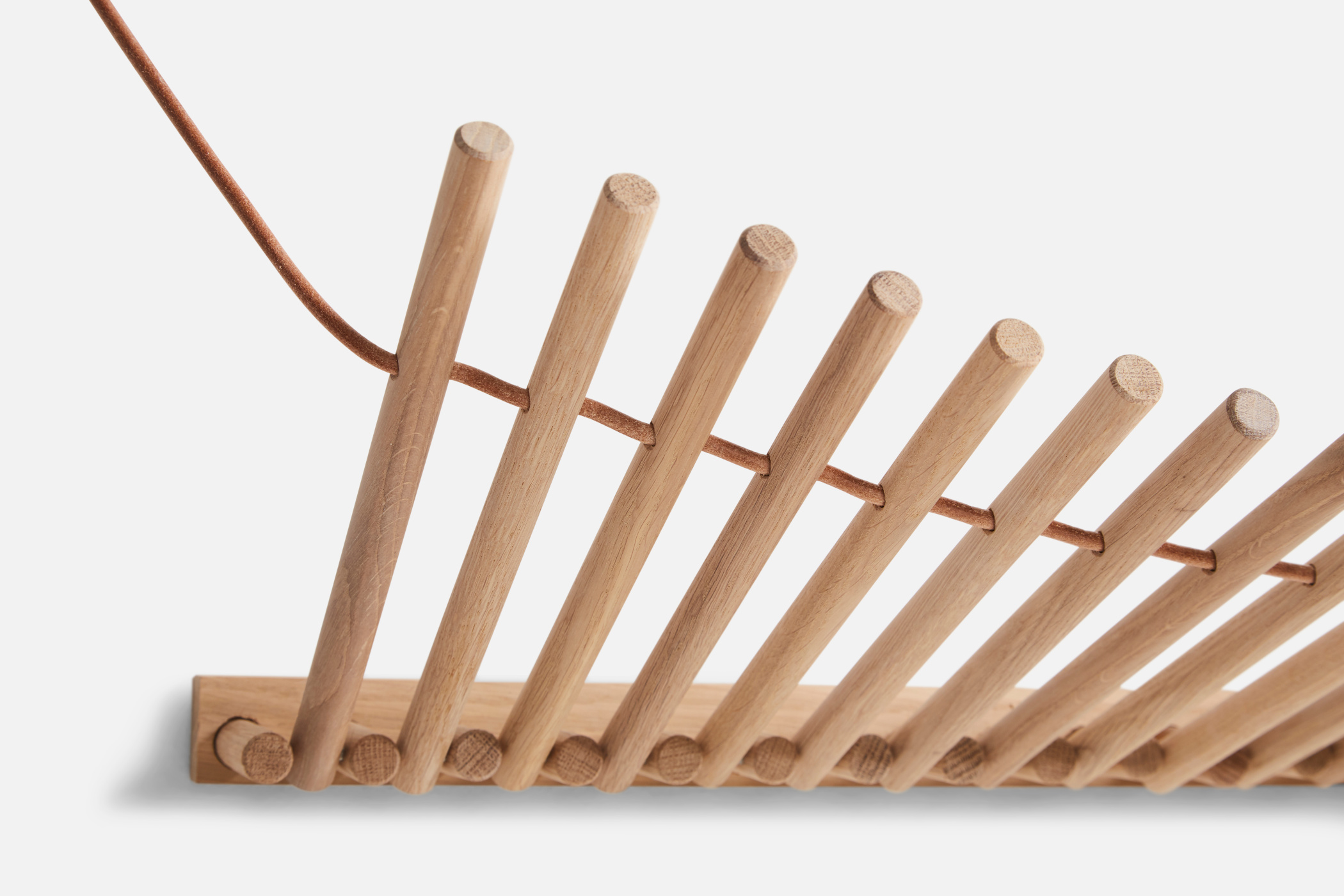 | Details: | Der Knaegt Garderobenständer kombiniert elegante Ästhetik mit Funktion. Dynamische Linien aus Holzstäben und Lederschnur passen sich jedem Kleidungsstück an und machen ihn zum stilvollen Highlight für jeden Eingangsbereich. |