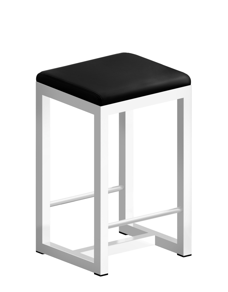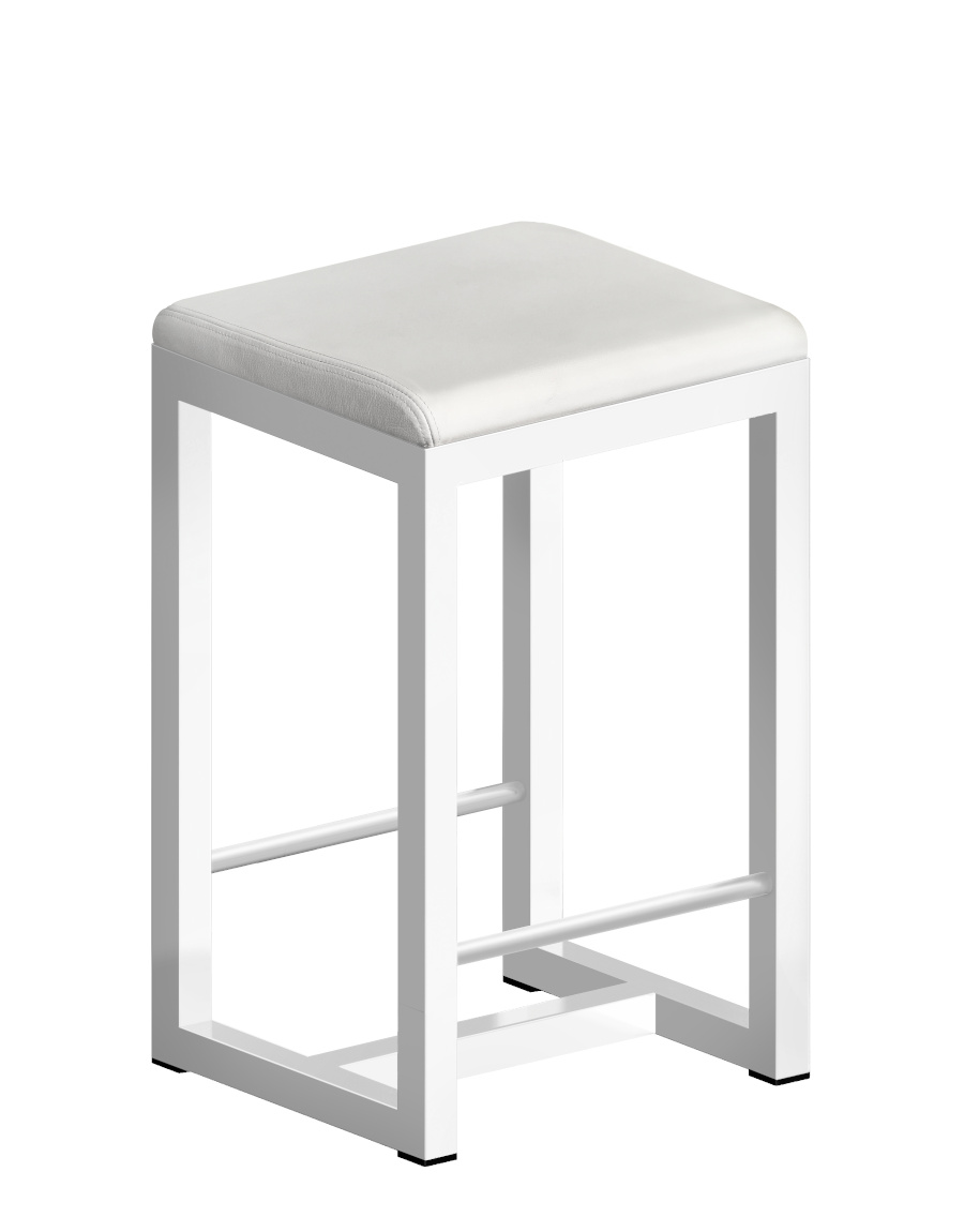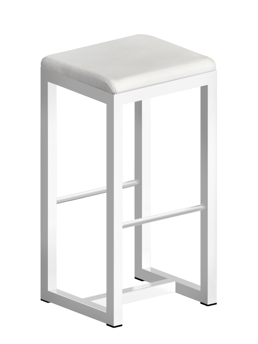 | Material: | Gestell aus Vierkantstahlrohr 35 x 35 mm, epoxylackiert weiß gaufriert. Eingesetzter, gepolsterter Sitz mit Bezug aus Leder. |