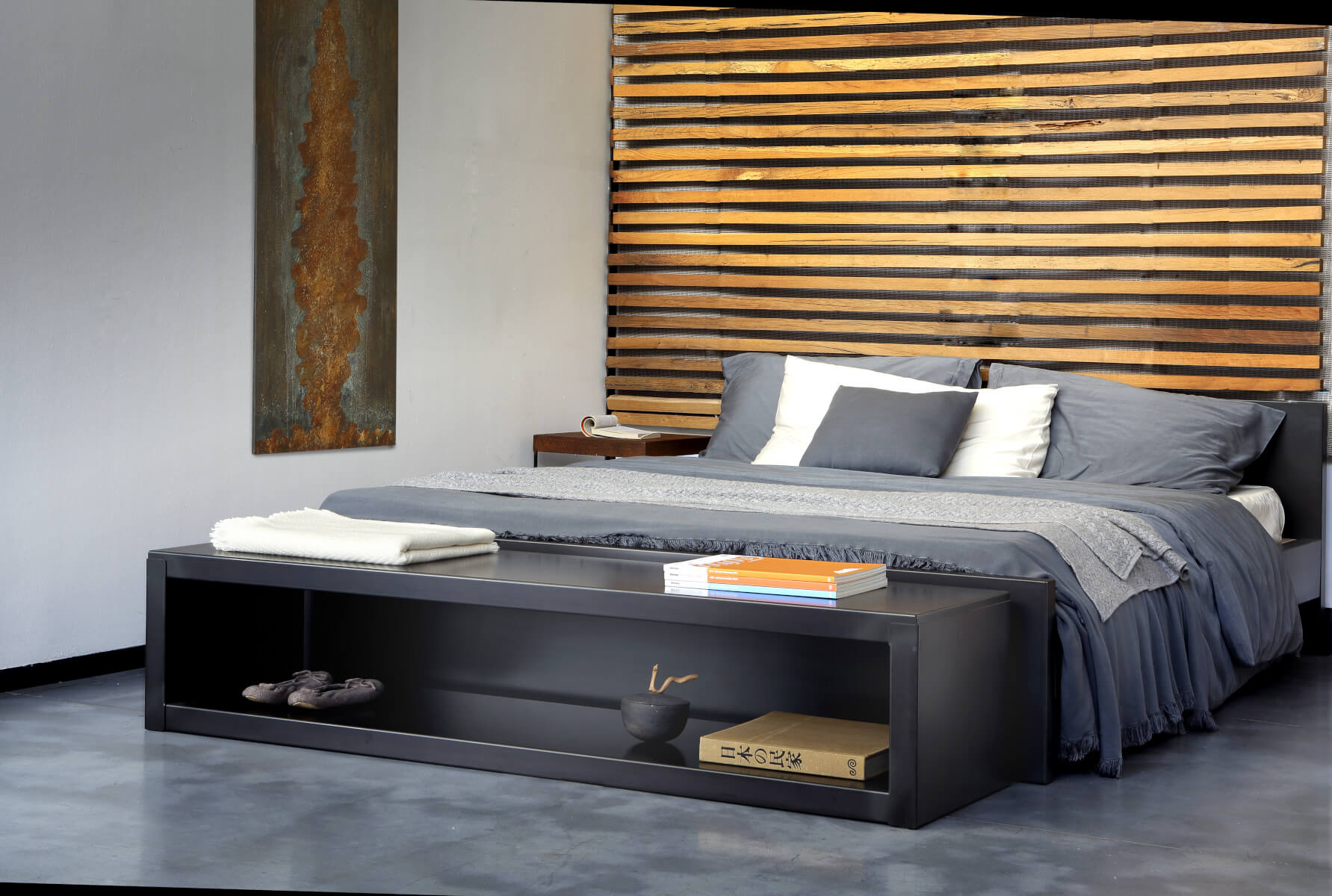 Das Low Rack Regal ist aus schwarz phosphatierten Stahlblech, ein Material der Extraklasse. Es ist in zwei Größen erhältlich und passt einfach immer. Außerdem entspricht es voll und ganz der Philosophie von Zeus, denn die Marke Zeus steht für authentische, minimalistische und gleichzeitig funktionale Möbelstücke.