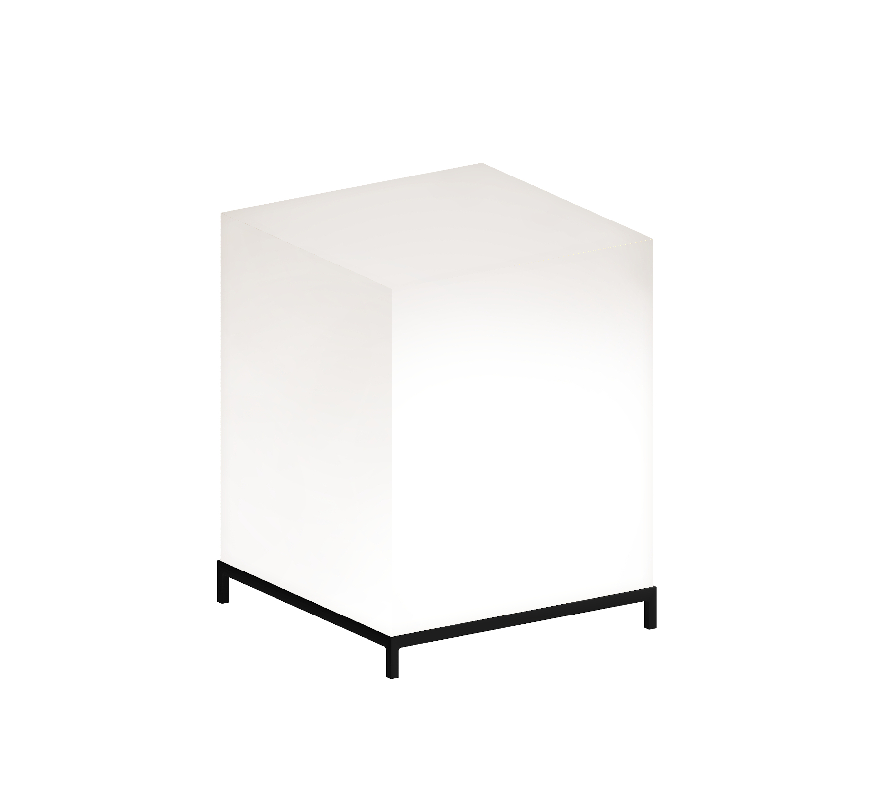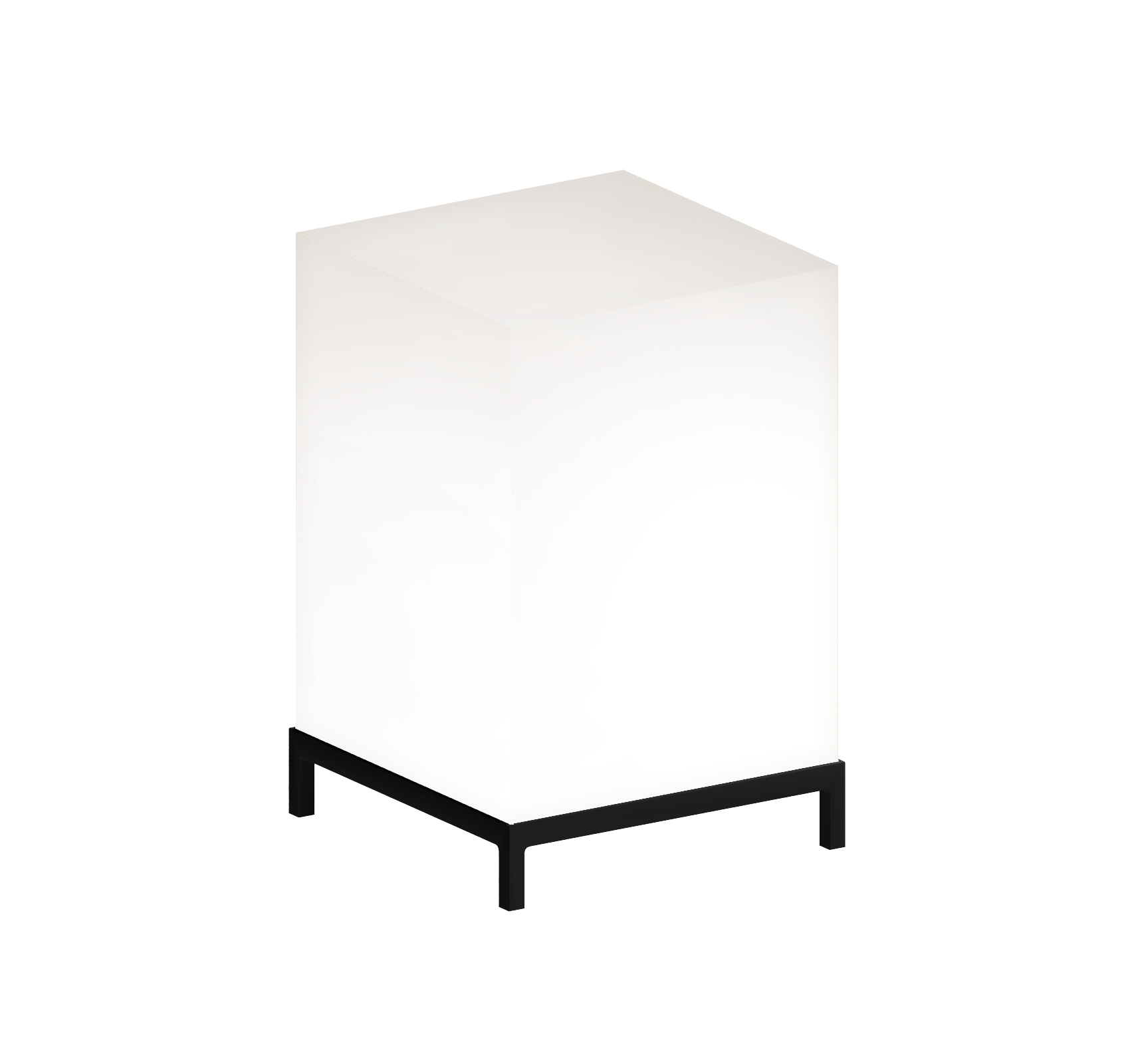 | Material: | Gestell aus Vierkantstahlrohr 15 x 15 mm. Epoxylackiertes Gestell, Farbe gunmetal. Kubischer Strahler aus opalinem Akrylharz. |