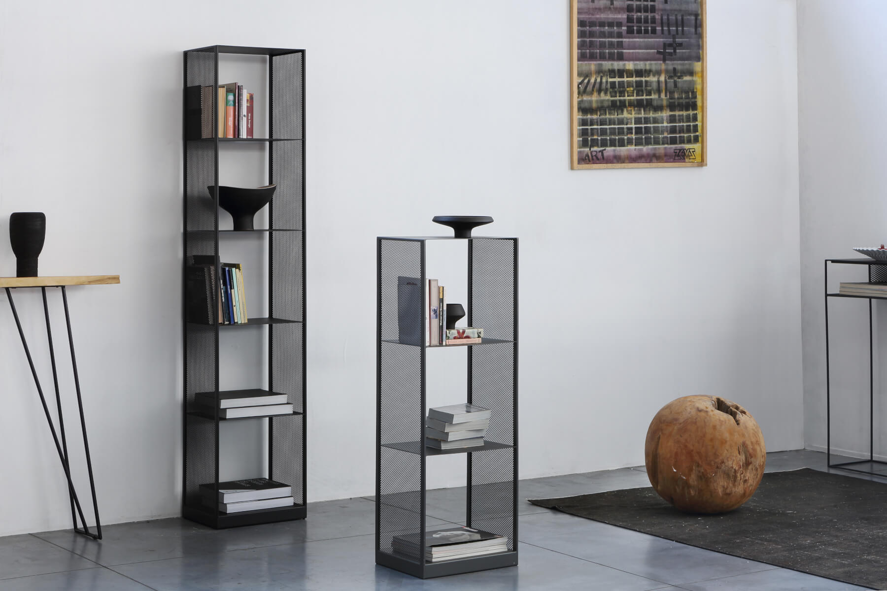 Das Tristano Regal der Marke Zeus ist ein modernes Meisterwerk des italienischen Designers Maurizio Peregalli und verkörpert mit seinem Design aus Stahlnetz eine industrielle Ästhetik mit einem luftig zarten Design.