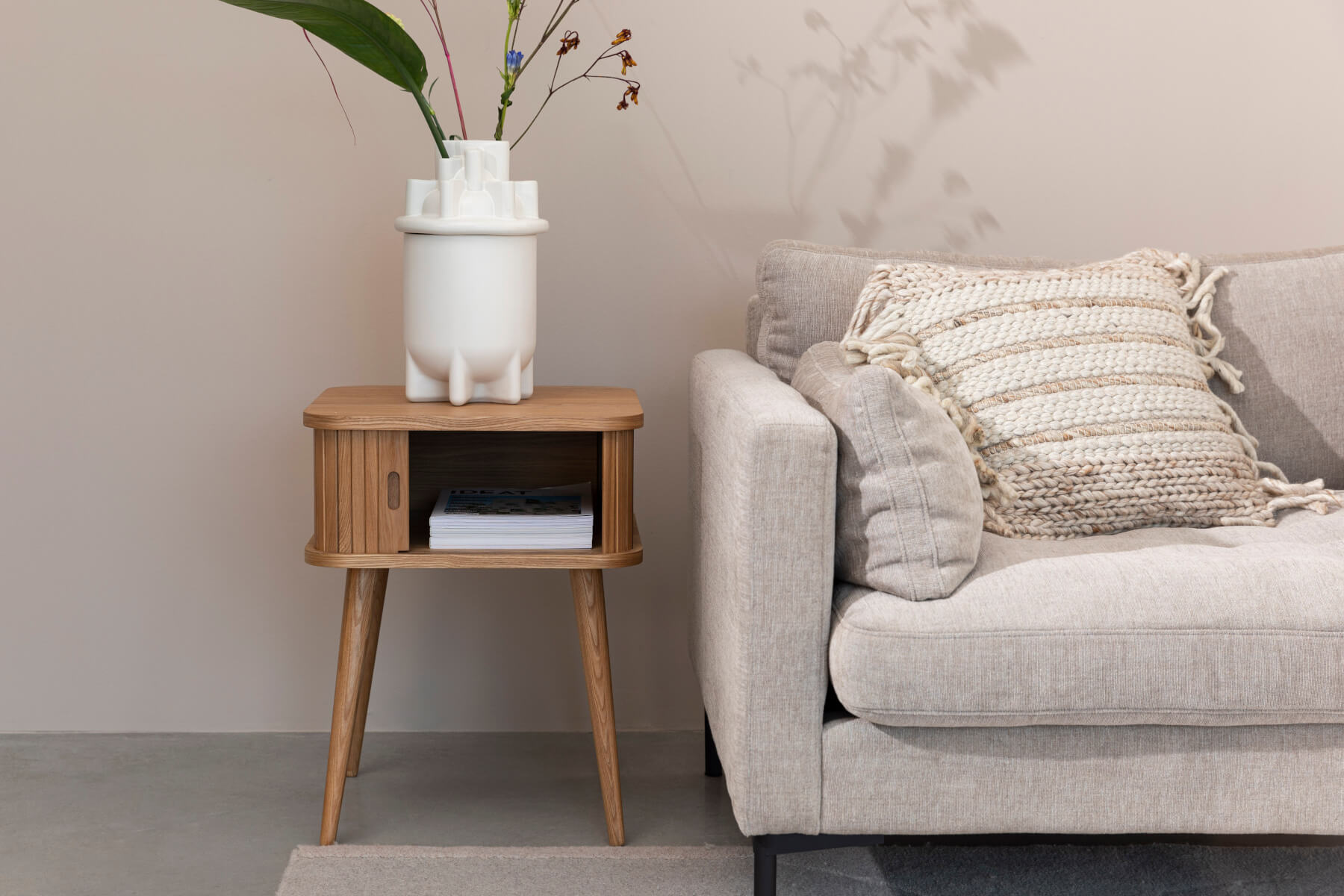 Der Zuiver Barbier Beistelltisch vereint zeitlose Eleganz mit subtiler Raffinesse und avanciert zu einem stilvollen Akzent in modernen Wohnlandschaften sowie repräsentativen Arbeitsbereichen. Inspiriert vom skandinavischen Minimalismus, überzeugt dieses Designobjekt durch seine ausgewogenen Proportionen und die harmonische Verbindung von Form und Funktion. Das fein strukturierte Echtholzfurnier und die charakteristische Lamellen-Schiebetür verleihen jedem Raum dezente Wertigkeit, ohne dabei aufzutrumpfen. Die klaren Linien und das zurückhaltende Farbspektrum betonen die Vielseitigkeit des Barbier Beistelltischs, während die präzise Verarbeitung Anspruch und Stilbewusstsein gleichermaßen widerspiegeln. Ob neben einer edlen Sitzlandschaft, im Eingangsbereich oder als Ergänzung modernistischer Bürowelten – der Beistelltisch schafft immer eine Bühne für kuratierte Objekte des täglichen Lebens und setzt diese gekonnt in Szene. Im Inneren überzeugt der Zuiver Barbier Beistelltisch mit durchdachtem Stauraum, diskret verborgen hinter einer aus massivem Eichenholz gefertigten Schiebetür mit filigraner Rillenstruktur. Seine Maße von 40 x 40 x 50 Zentimetern und das verwendete Holzfurnier sorgen für Stabilität und dezente Leichtigkeit. Die natürliche Farbgebung harmoniert ausgezeichnet mit verschiedenen Einrichtungsstilen. Entworfen wurde das Modell von den niederländischen Designern der Marke Zuiver, die Wert auf nachhaltige Materialien und innovative Funktionalität legen.Barbier Beistelltisch – Anspruchsvolle Materialien, klare Linien
