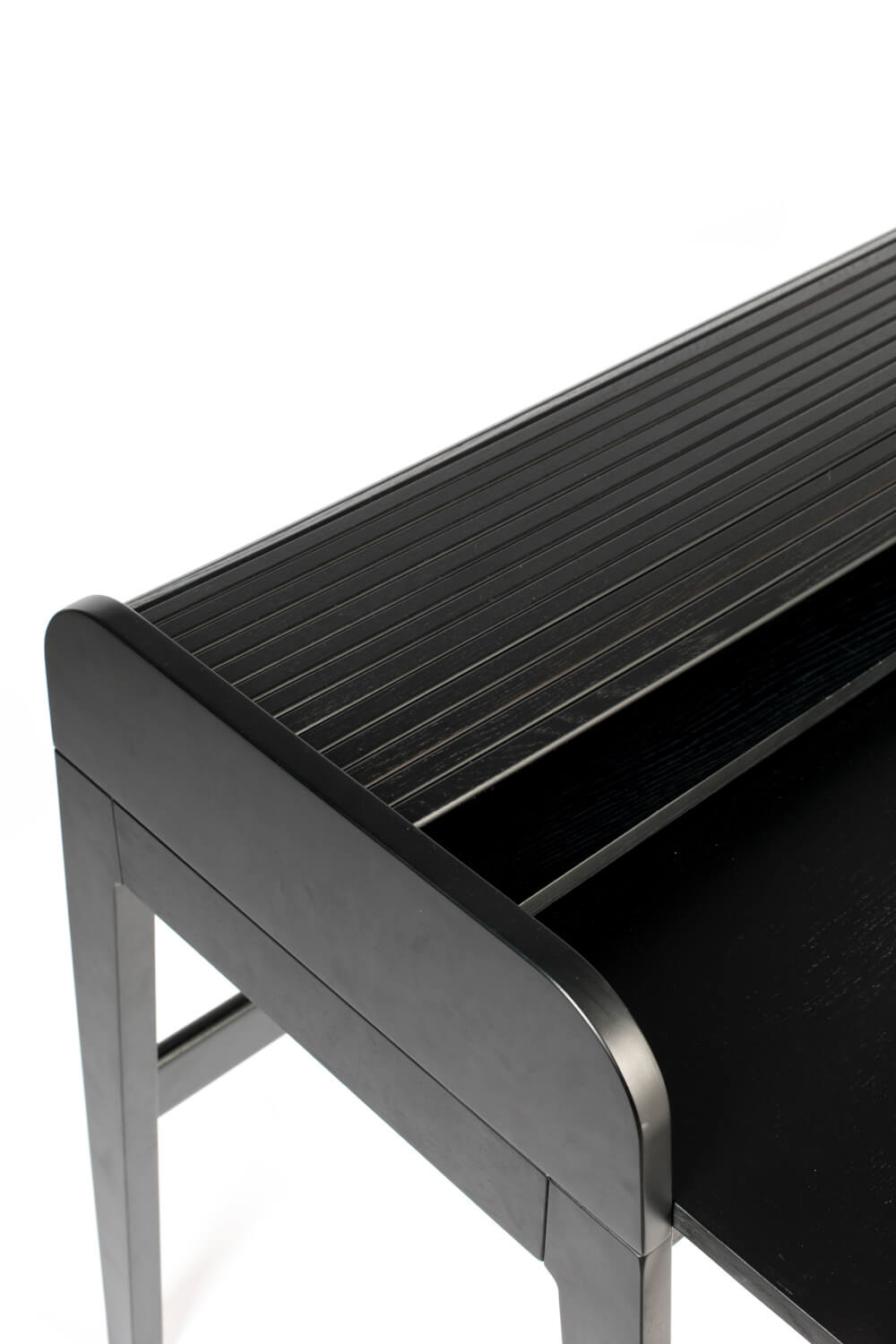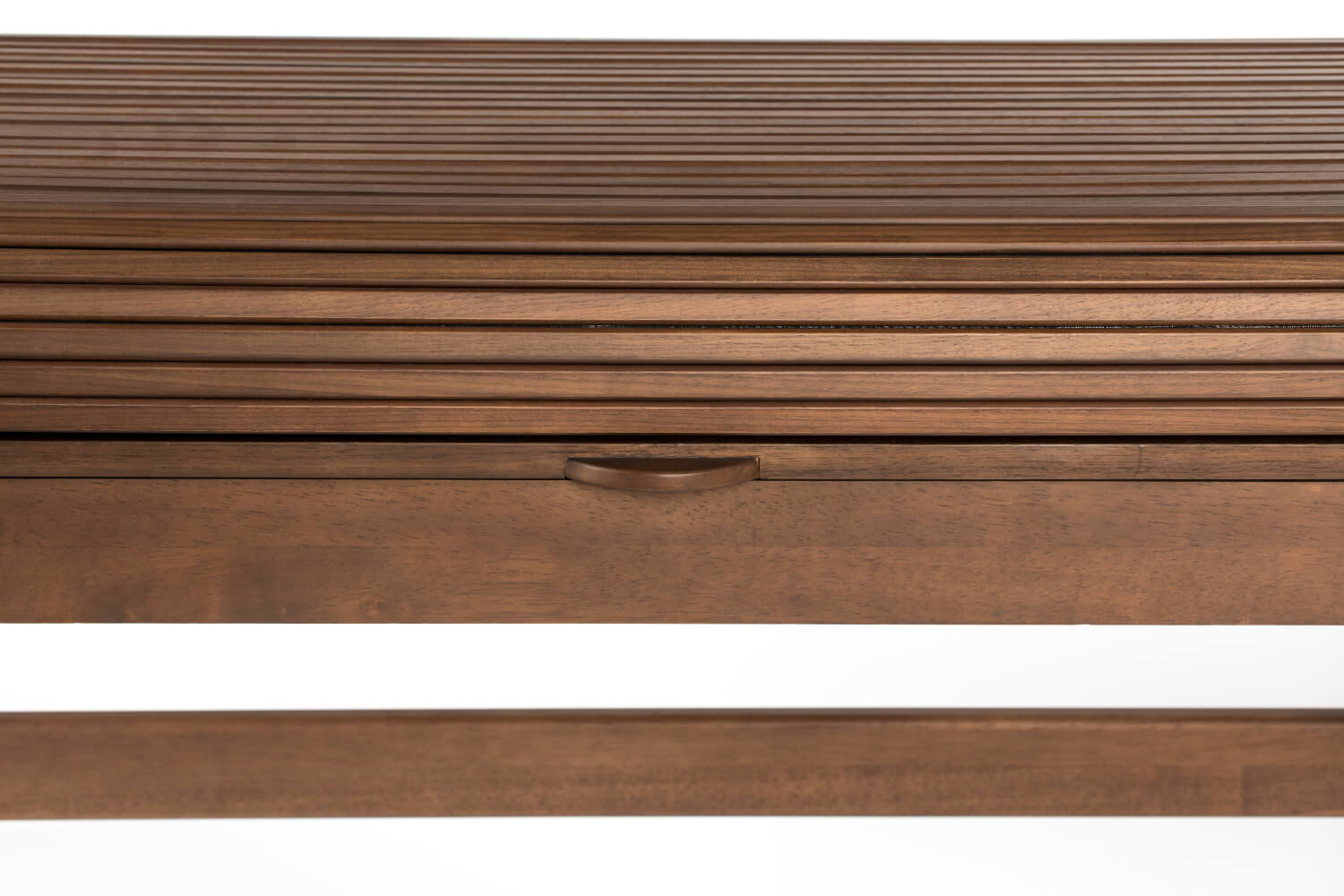 Der Zuiver Barbier Schreibtisch verbindet auf subtile Weise klassische Konturen mit moderner Raffinesse. Mit seiner klaren Formsprache bereichert er Räume, in denen Wert auf reduziertes Design und stilvolle Zurückhaltung gelegt wird. Die sanft gebogenen Lamellen der charakteristischen Schiebetüren unterstreichen die Exklusivität dieses Möbelstücks und schenken dem Ensemble eine warme, wohnliche Atmosphäre. Funktionalität wird hier auf das Wesentliche reduziert, was einen harmonischen Rückzugsort für konzentriertes Arbeiten und inspirierende Kreativität schafft. Im Homeoffice oder in repräsentativen Geschäftsräumen – der Barbier Schreibtisch von Zuiver setzt einen Akzent, der geschmackvoll und dabei zurückhaltend wirkt. Feine Details und eine kompromisslose Qualität fügen sich in ein ästhetisches Gesamtbild, das modernen sowie klassischen Interieurs gleichermaßen gerecht wird. Gefertigt wird der Zuiver Barbier Schreibtisch aus massivem Eschenholz, feinem Eschenfurnier und eleganten MDF-Elementen. Sein großzügiges Maß von circa 120 Zentimetern Breite und 60 Zentimetern Tiefe sowie einer Höhe von 75 Zentimetern bietet stilvoll Platz für Arbeitsutensilien und Accessoires. Farblich überzeugt das Modell in warmem Naturton oder klassischem Walnuss, das metallische Gestell fügt sich dezent in das Design ein. Entworfen wurde der Schreibtisch von den Zuiver Designern, die für ihr feines Gespür für Materialien und Formen bekannt sind.Barbier Schreibtisch – Exquisite Verarbeitung und stilsichere Eleganz
