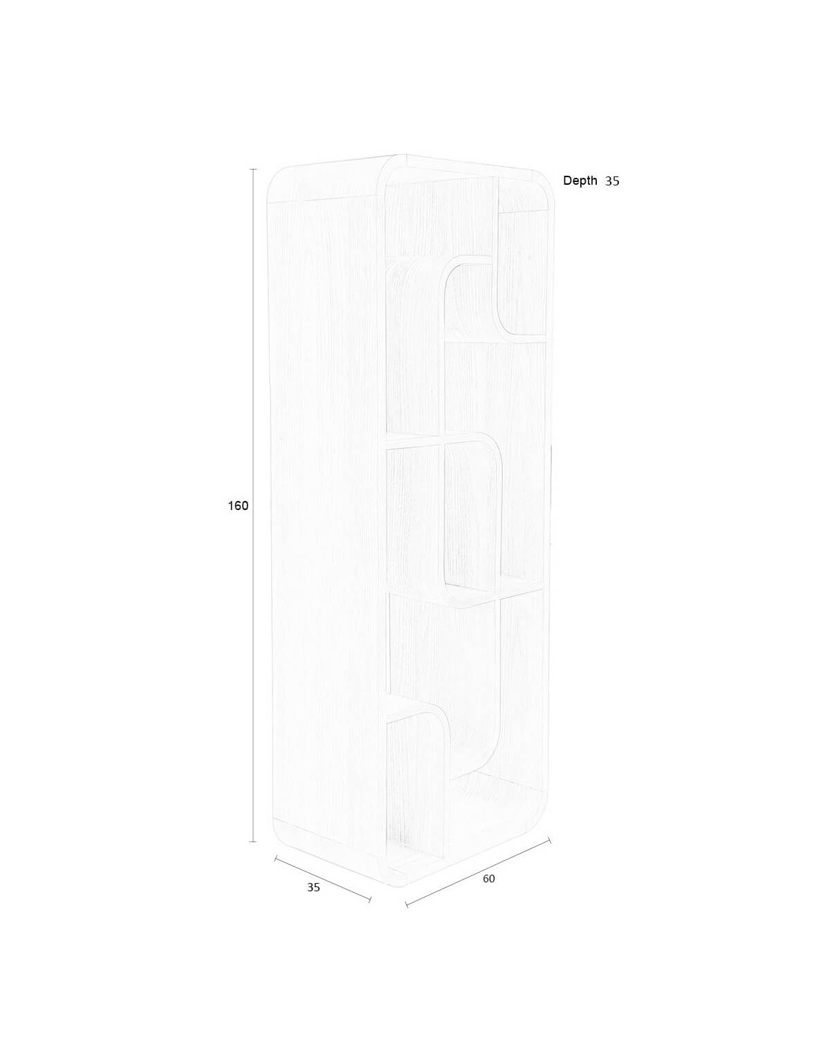 | Abmessungen: | Breite: 35 cm, Höhe: 160 cm, Tiefe: 60 cm |