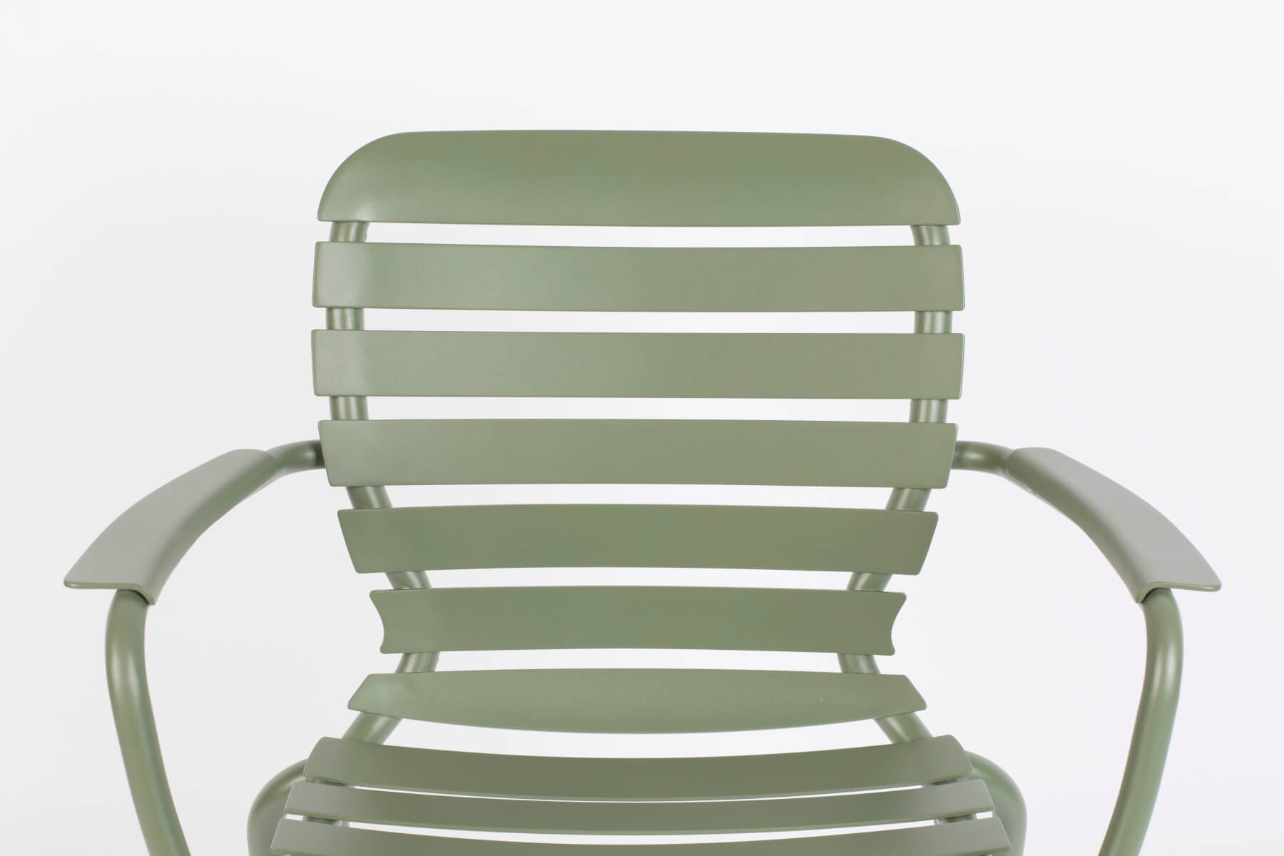 Der Zuiver Vondel Armlehnstuhl repräsentiert eine harmonische Verbindung aus zurückhaltender Eleganz und zeitgemäßem Komfort. Klare Linien und eine präzise Formensprache schaffen ein außergewöhnliches Möbelstück, das klassische Zurückhaltung mit subtiler Raffinesse vereint. Der Stuhl besticht durch seine leichte, skulpturale Silhouette, die jedem Raum eine moderne Note verleiht und dennoch zum Verweilen einlädt. Die geschwungenen Armlehnen bieten nicht nur eine angenehme Sitzposition, sondern unterstreichen das Design mit ihrer ästhetischen Leichtigkeit. Das raffinierte Zusammenspiel von Oberfläche und Struktur lässt den Vondel Armlehnstuhl sowohl im privaten Wohnbereich als auch in exklusiven Business-Konzepten zu einem souveränen Statement avancieren. Subtile Details und die hochwertige Verarbeitung stehen für ein Möbelstück, das Stilbewusstsein und funktionale Ansprüche kompromisslos vereint. Mit einer Breite von 60 Zentimetern, einer Höhe von 83 Zentimetern und einer Tiefe von 59 Zentimetern überzeugt der Vondel Armlehnstuhl durch ausgewogene Proportionen. Das Gestell aus pulverbeschichtetem Aluminium sorgt für Stabilität und eine edle Erscheinung. Die Farbvarianten reichen von zeitlosem Schwarz bis zu sanften Grüntönen. Das Design stammt aus der Feder des Studios APE und ist Teil einer vielseitigen Kollektion.Vondel Armlehnstuhl – Hochwertige Verarbeitung und vielseitiger Einsatz